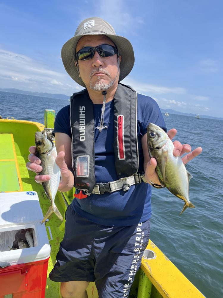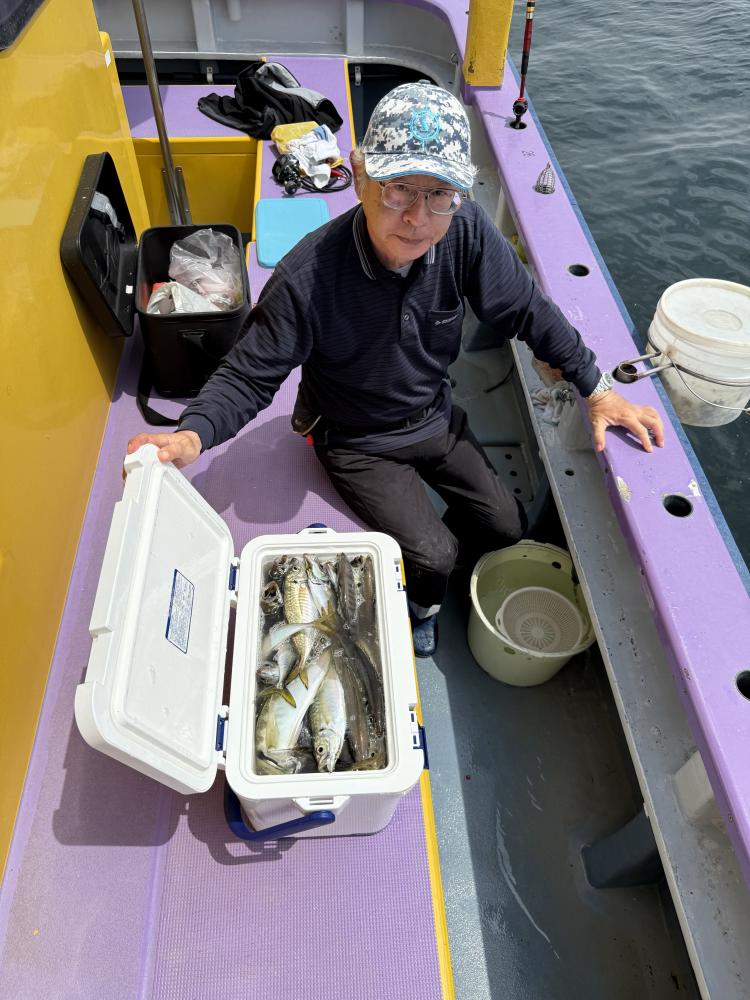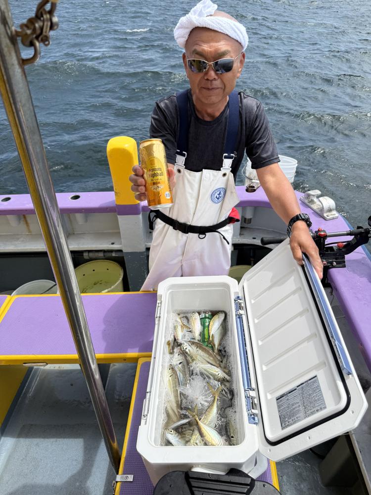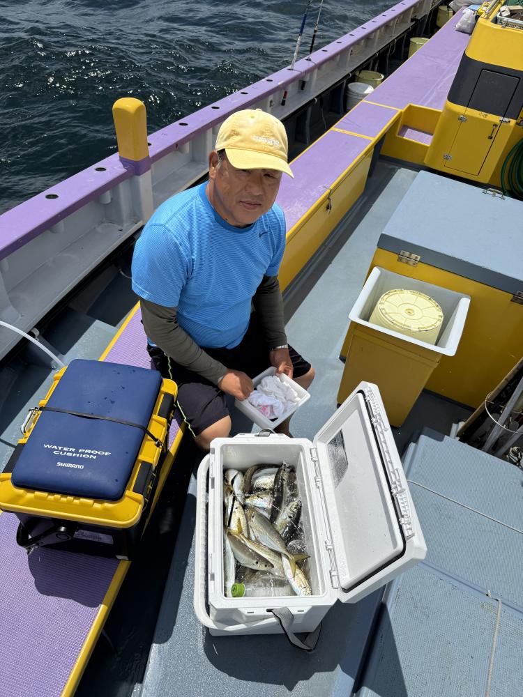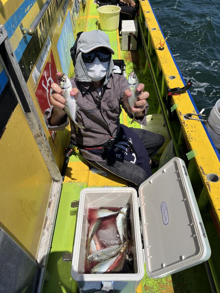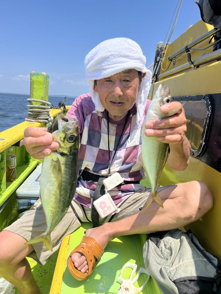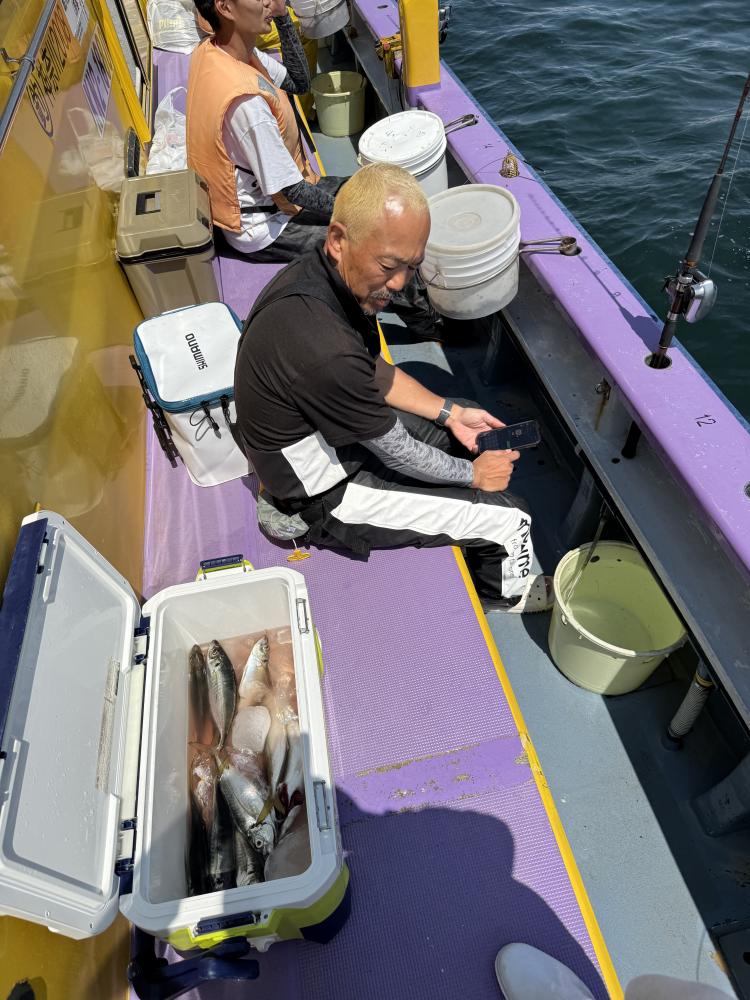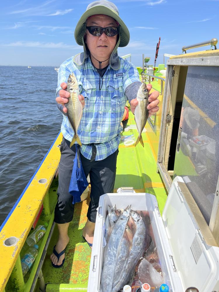 皆さん慣れて来たので、沖目ポイントへ大移動して乗合船と合流して沖上がりまで良型アジメインに