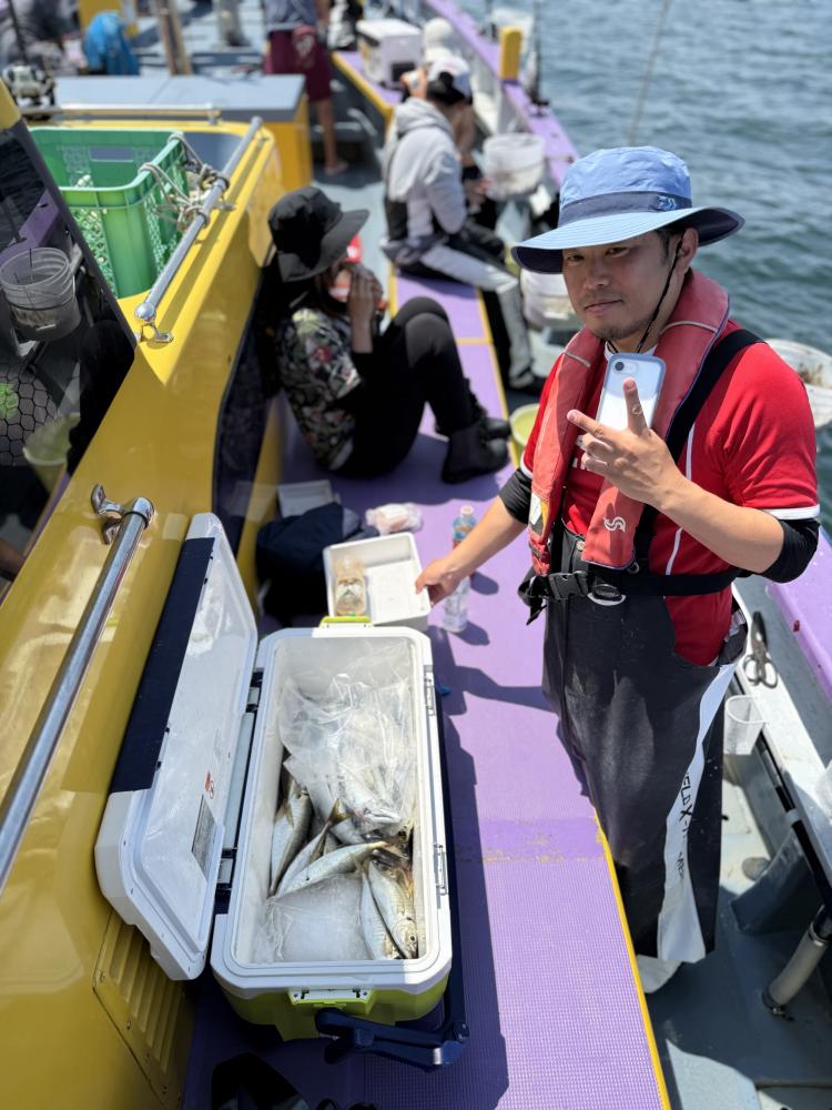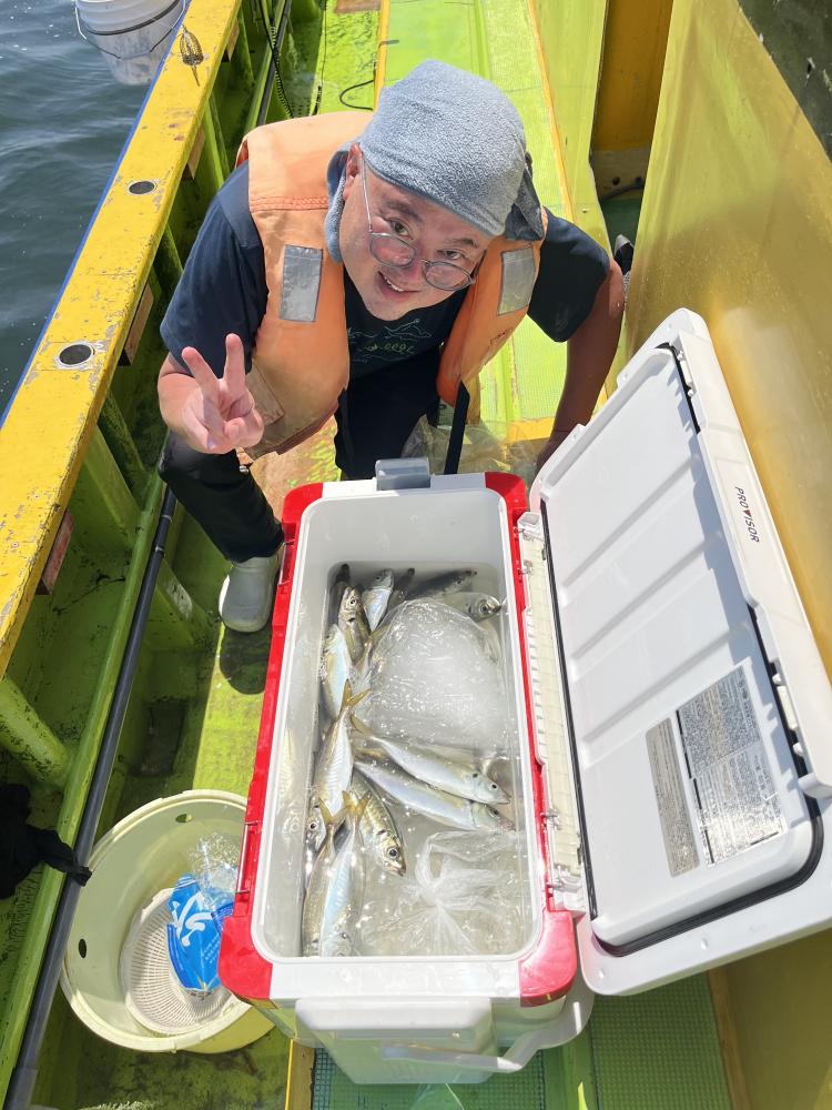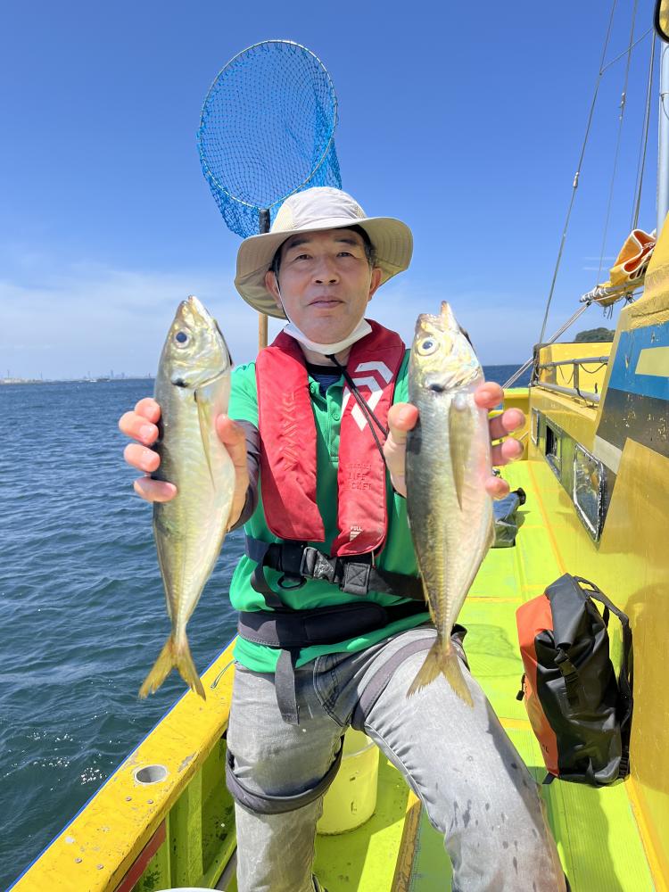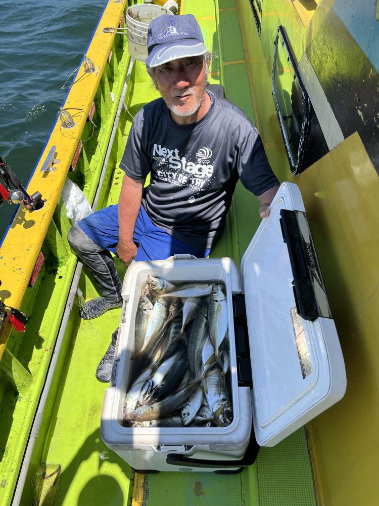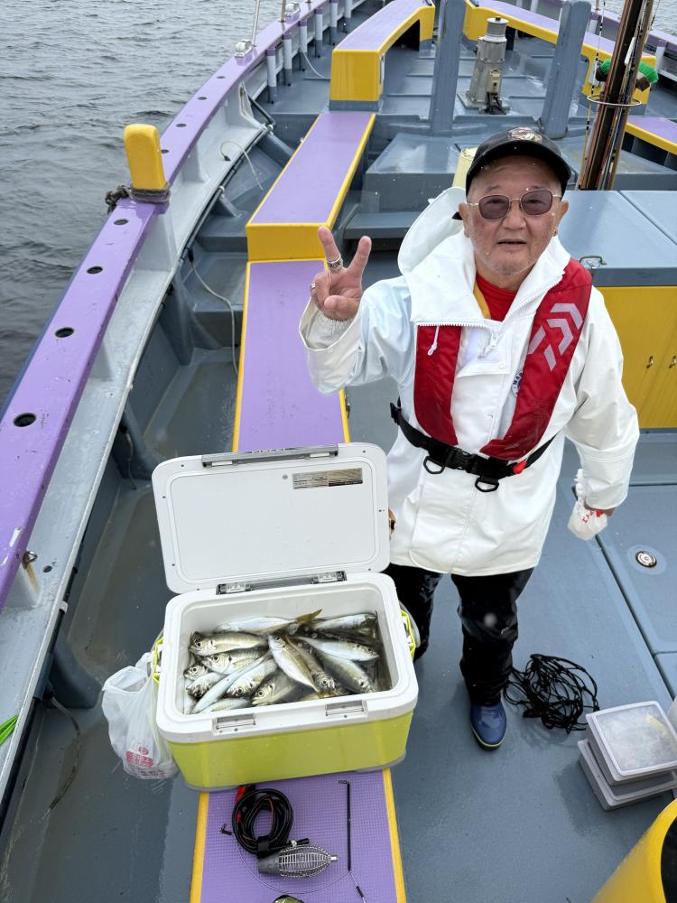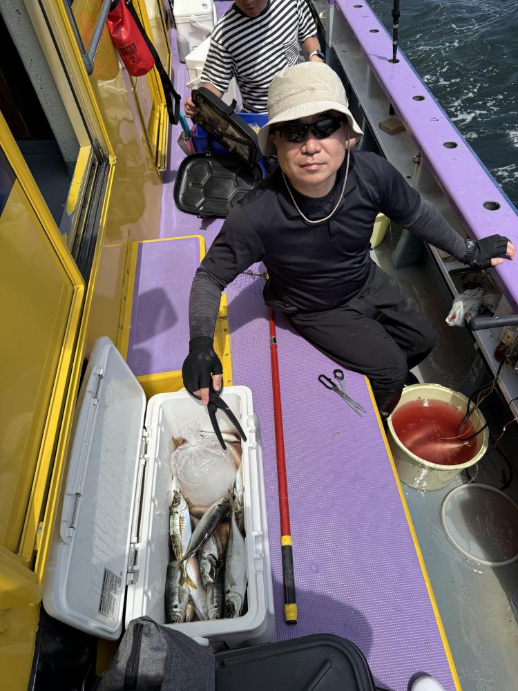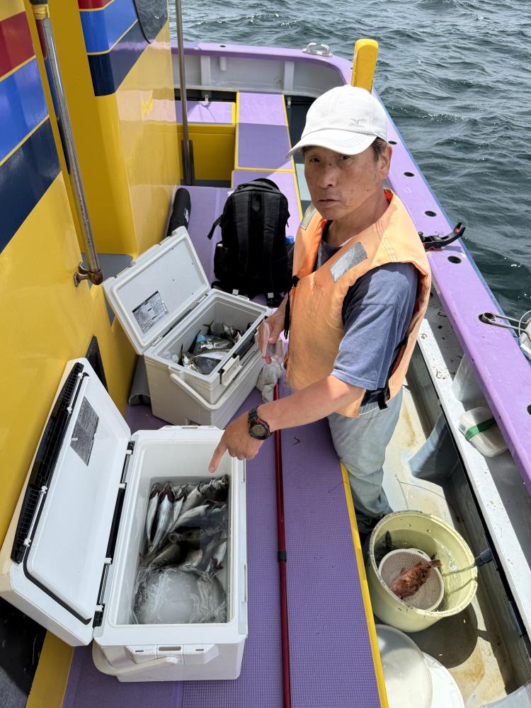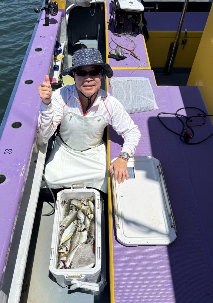 皆さん慣れて来たので、沖目ポイントへ大移動して乗合船と合流して沖上がりまで良型アジメインに