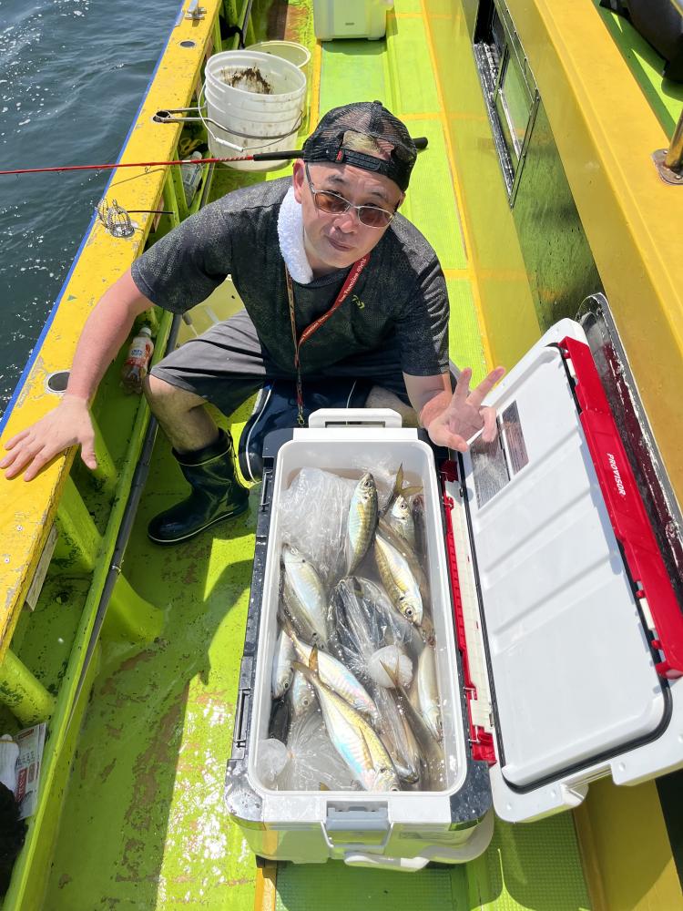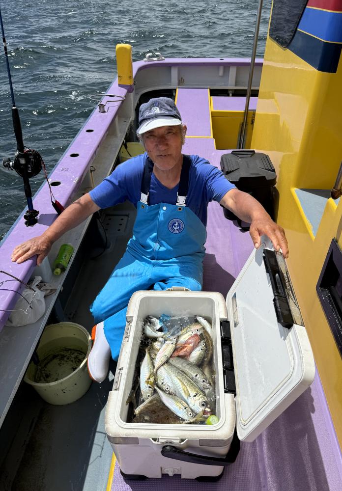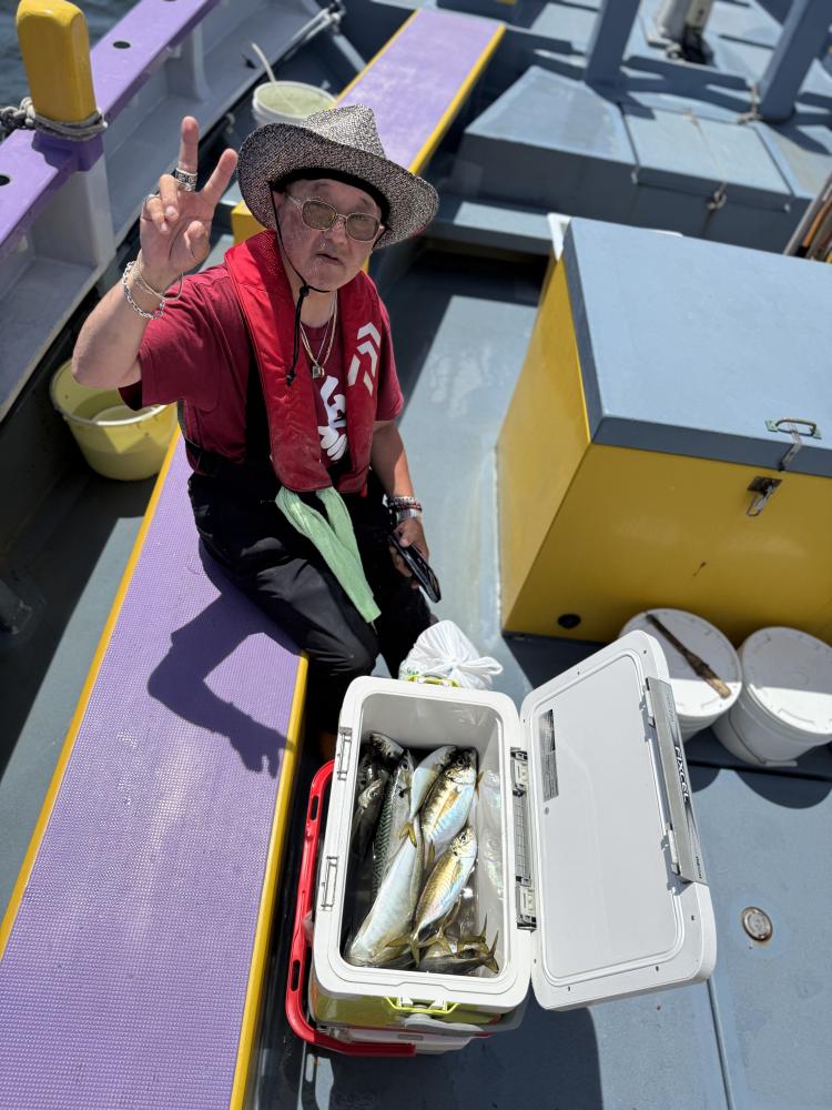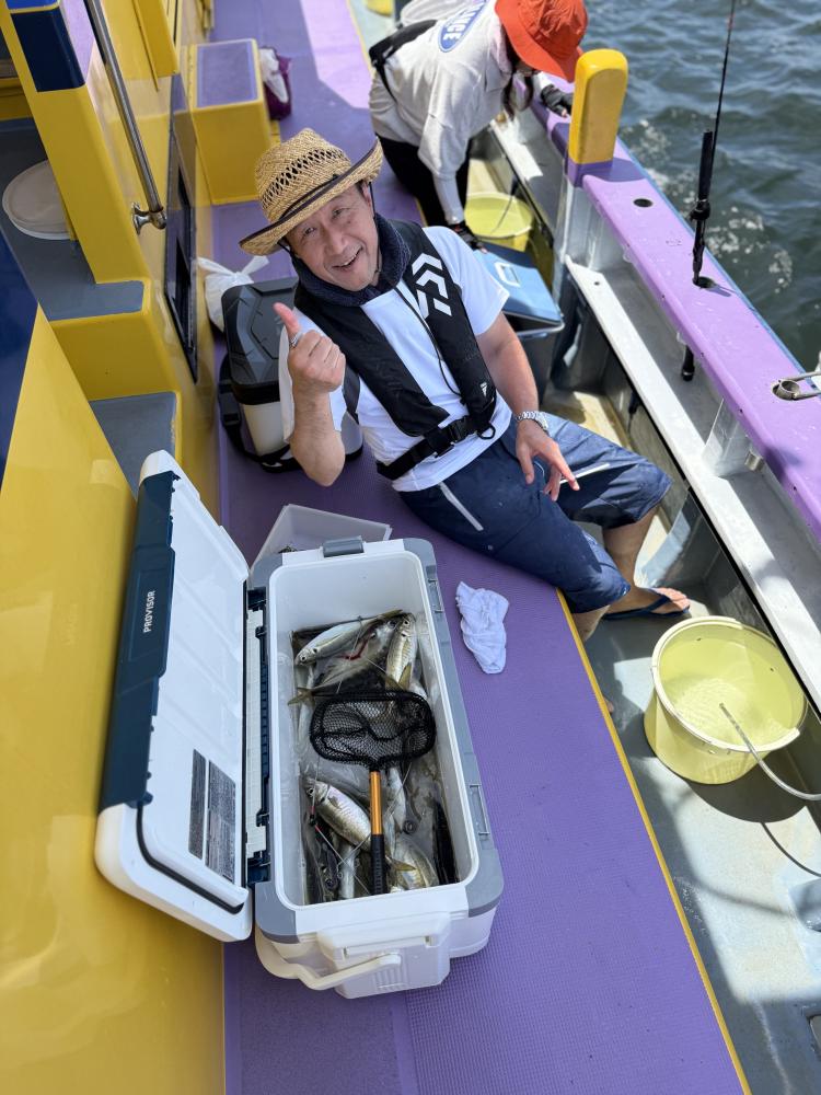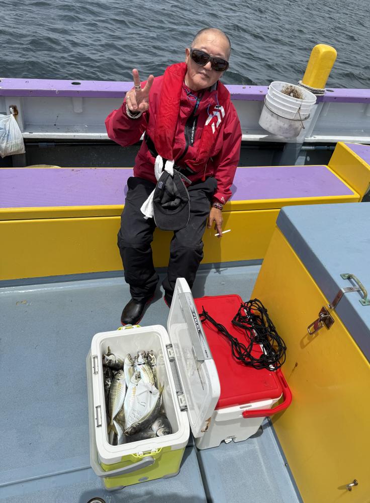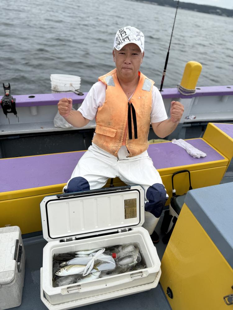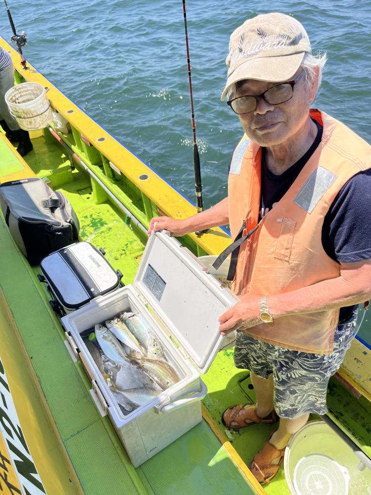 皆さん慣れて来たので、沖目ポイントへ大移動して乗合船と合流して沖上がりまで良型アジメインに