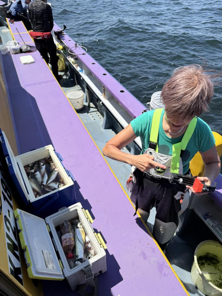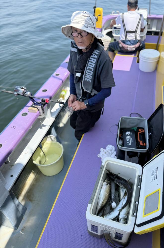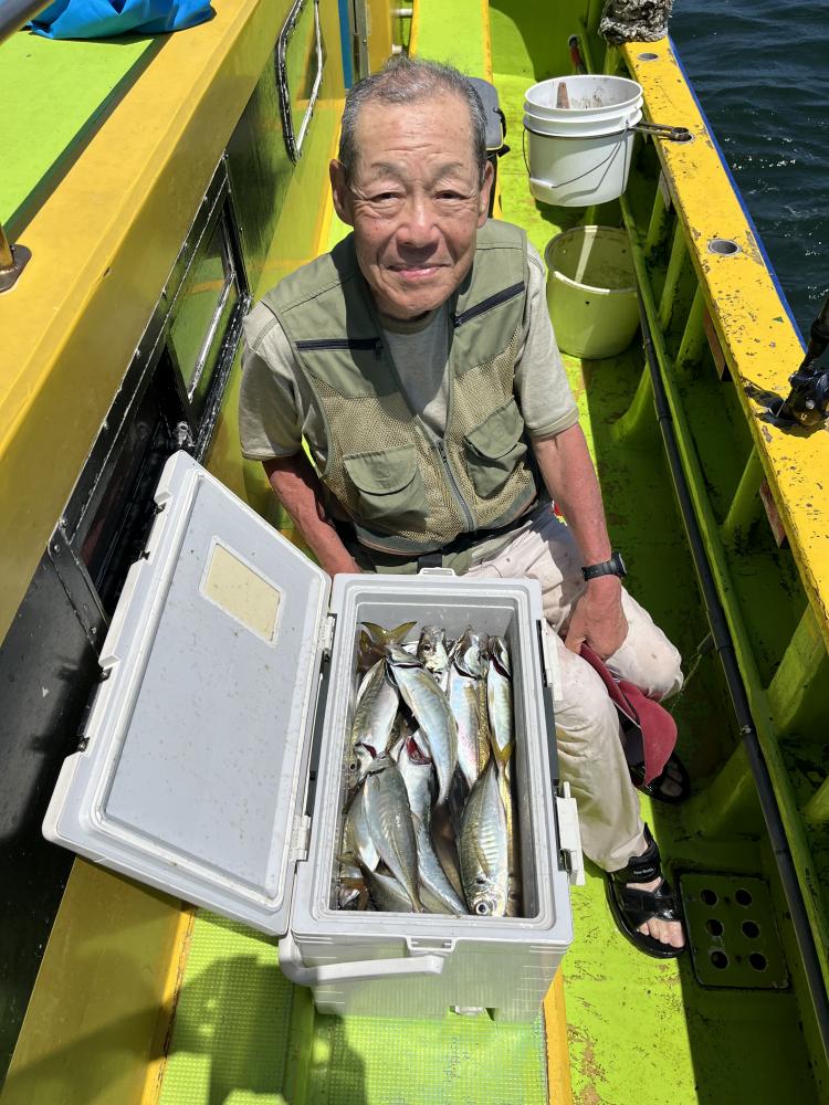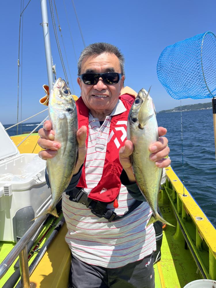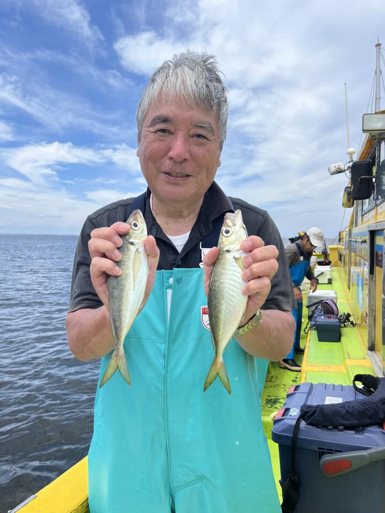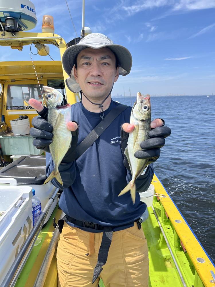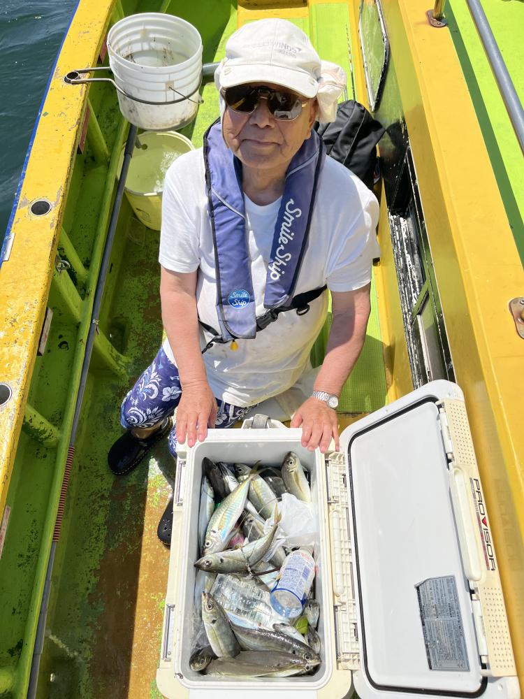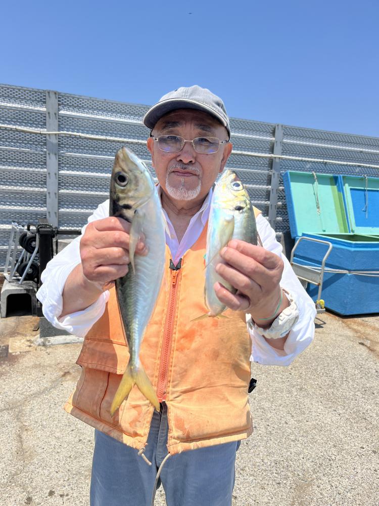 皆さん慣れて来たので、沖目ポイントへ大移動して乗合船と合流して沖上がりまで良型アジメインに
