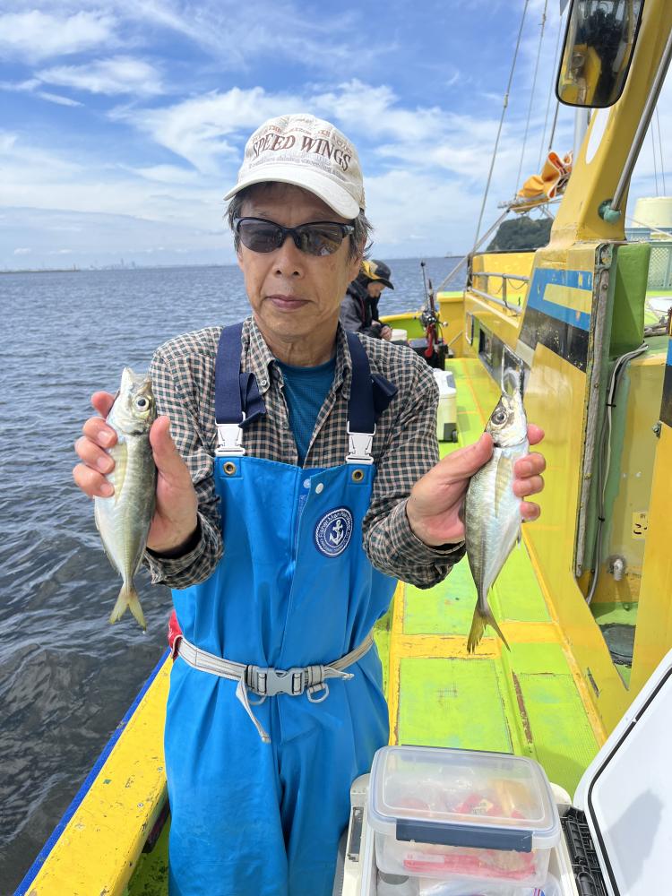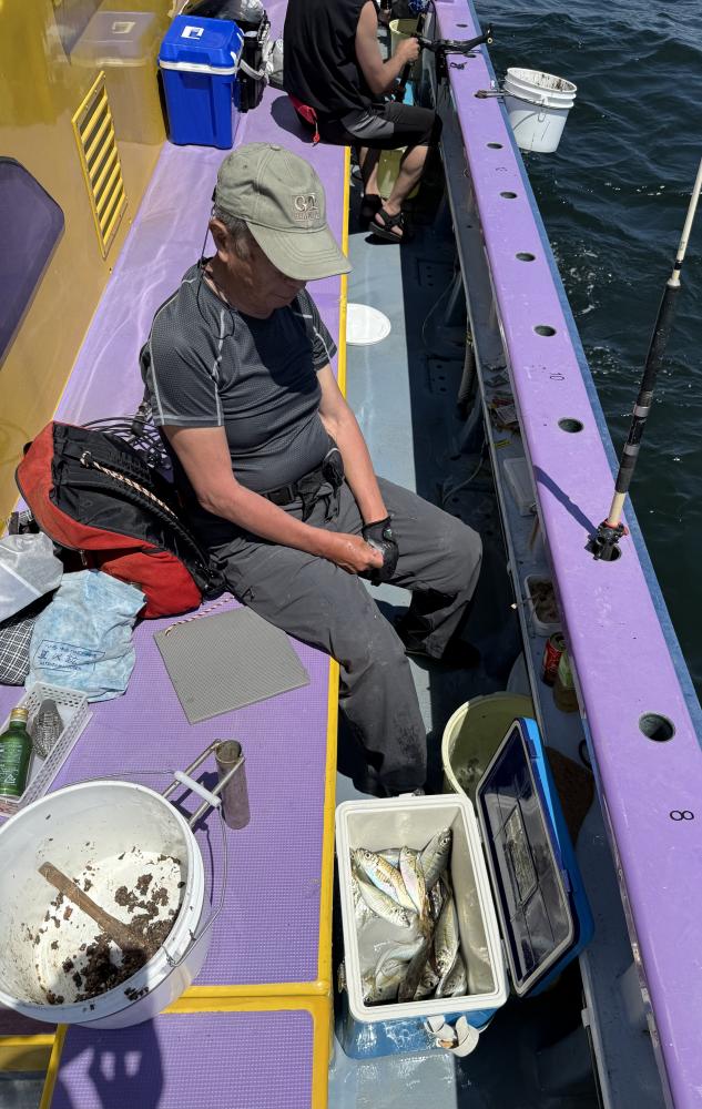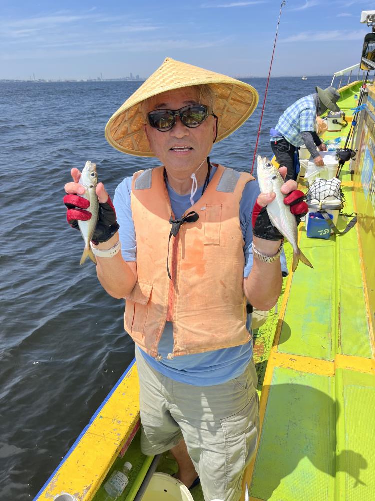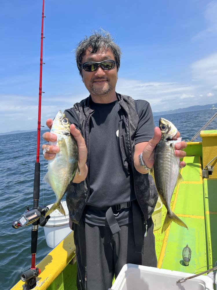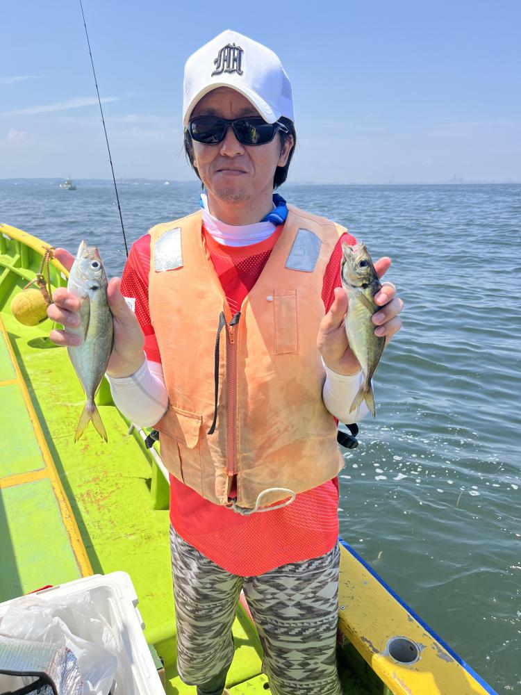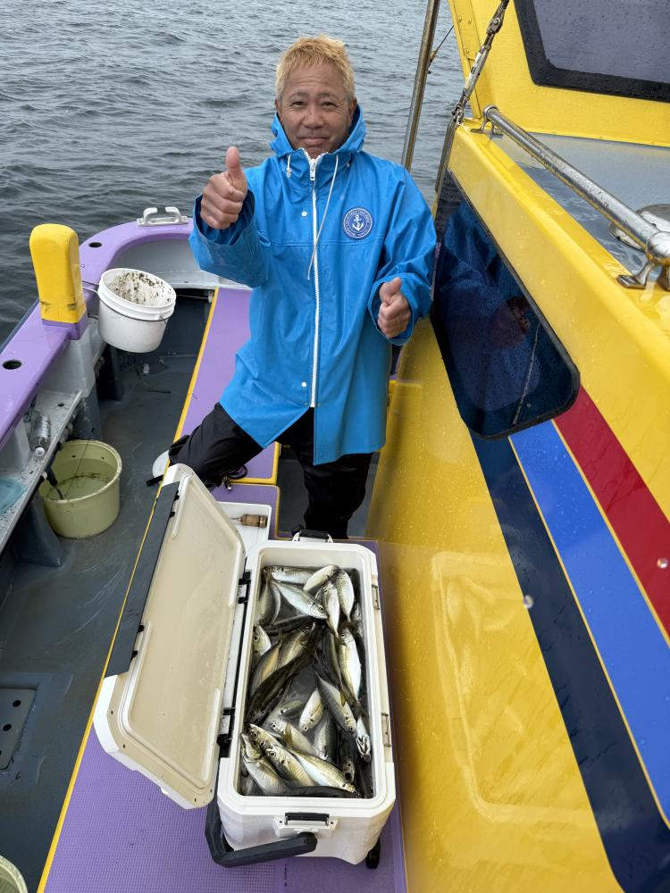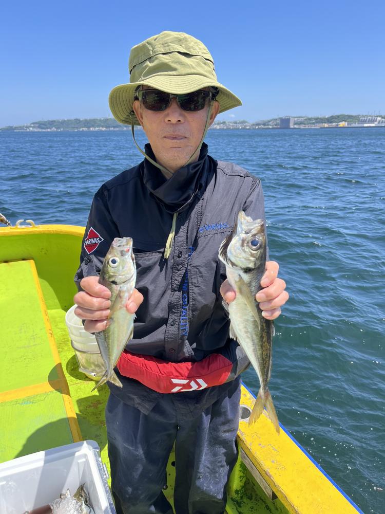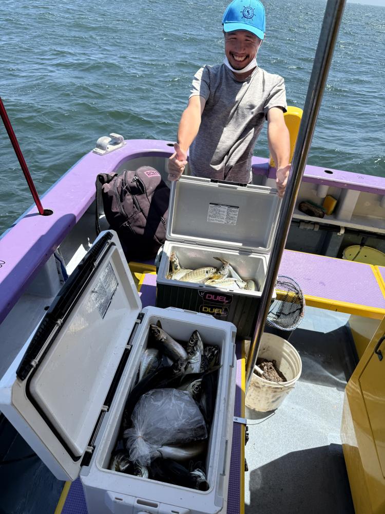 皆さん慣れて来たので、沖目ポイントへ大移動して乗合船と合流して沖上がりまで良型アジメインに