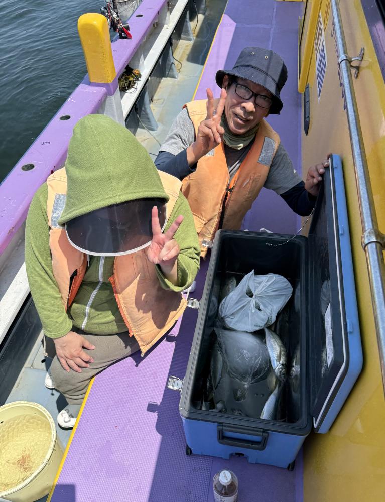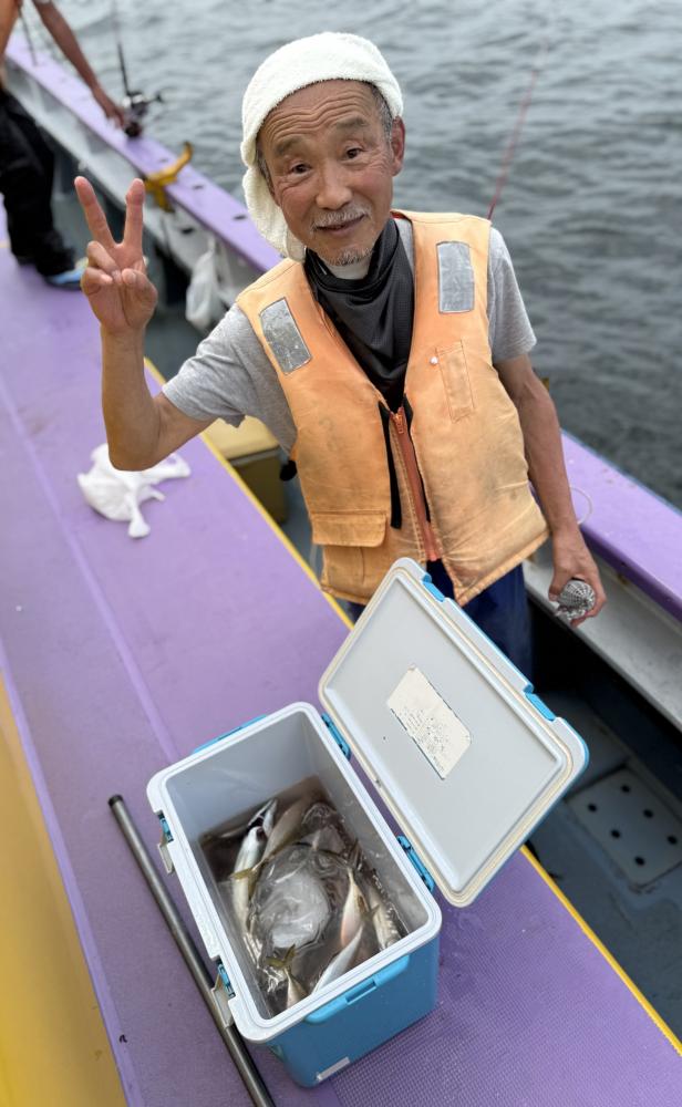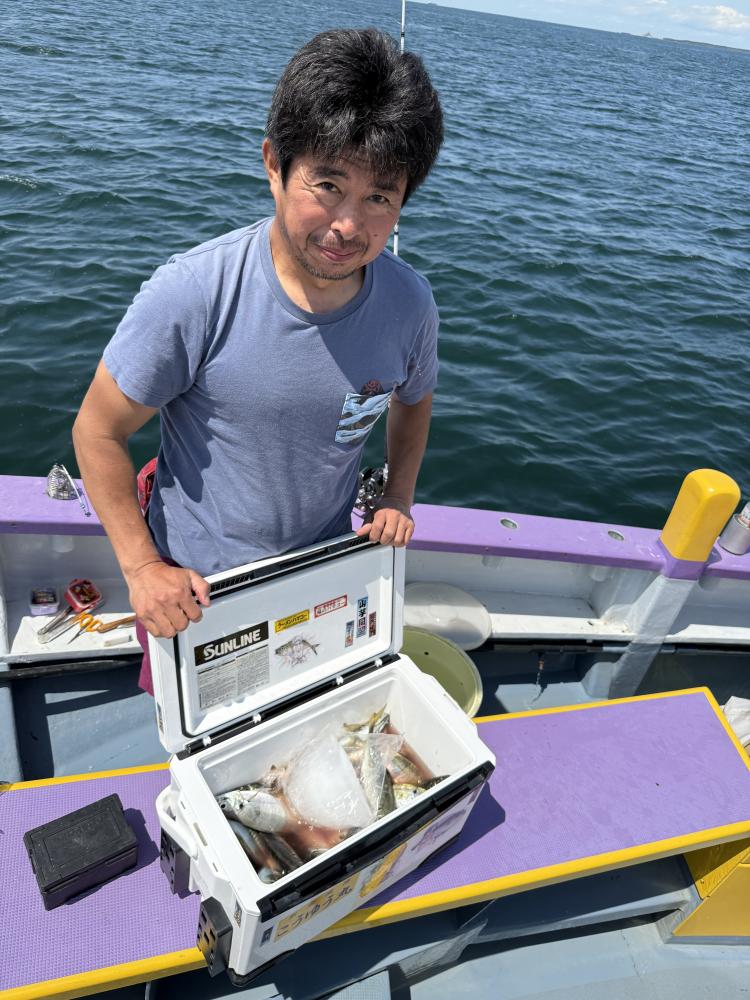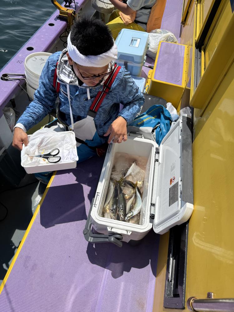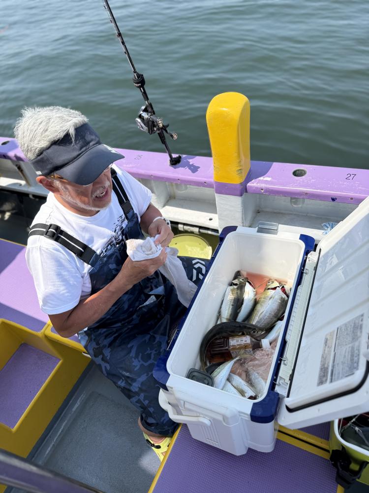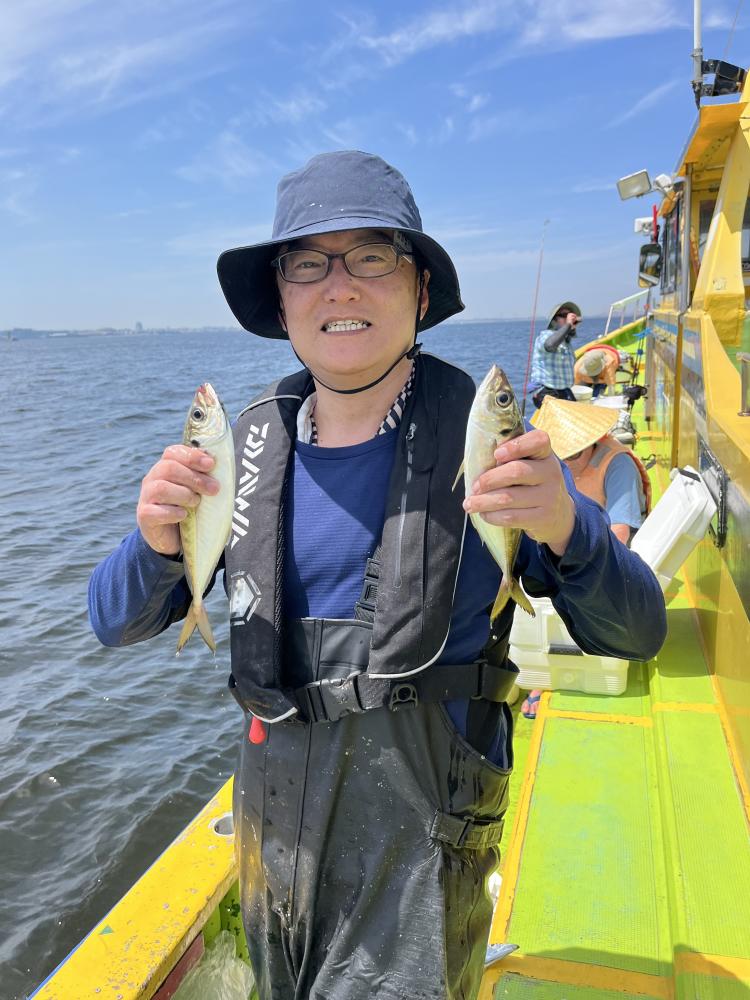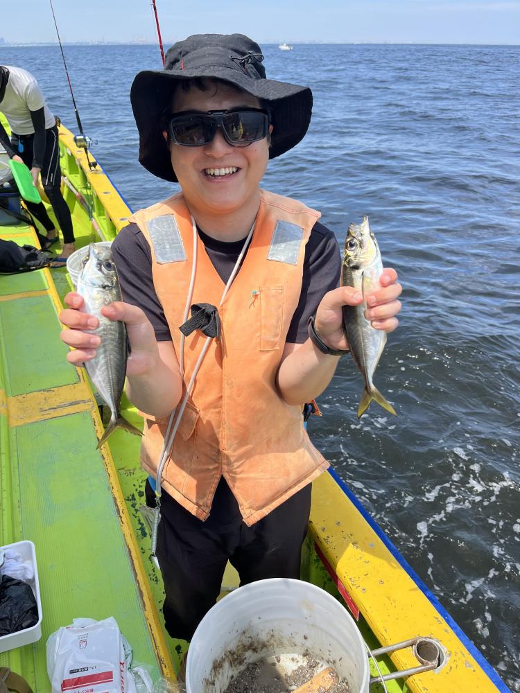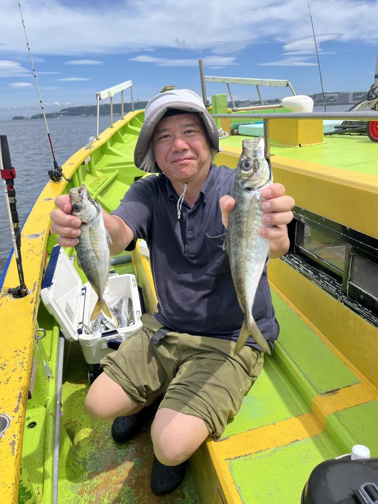 皆さん慣れて来たので、沖目ポイントへ大移動して乗合船と合流して沖上がりまで良型アジメインに