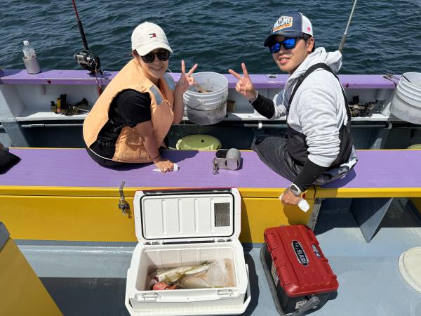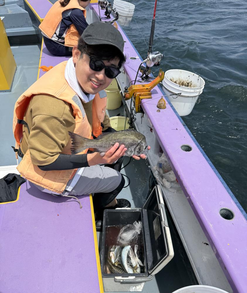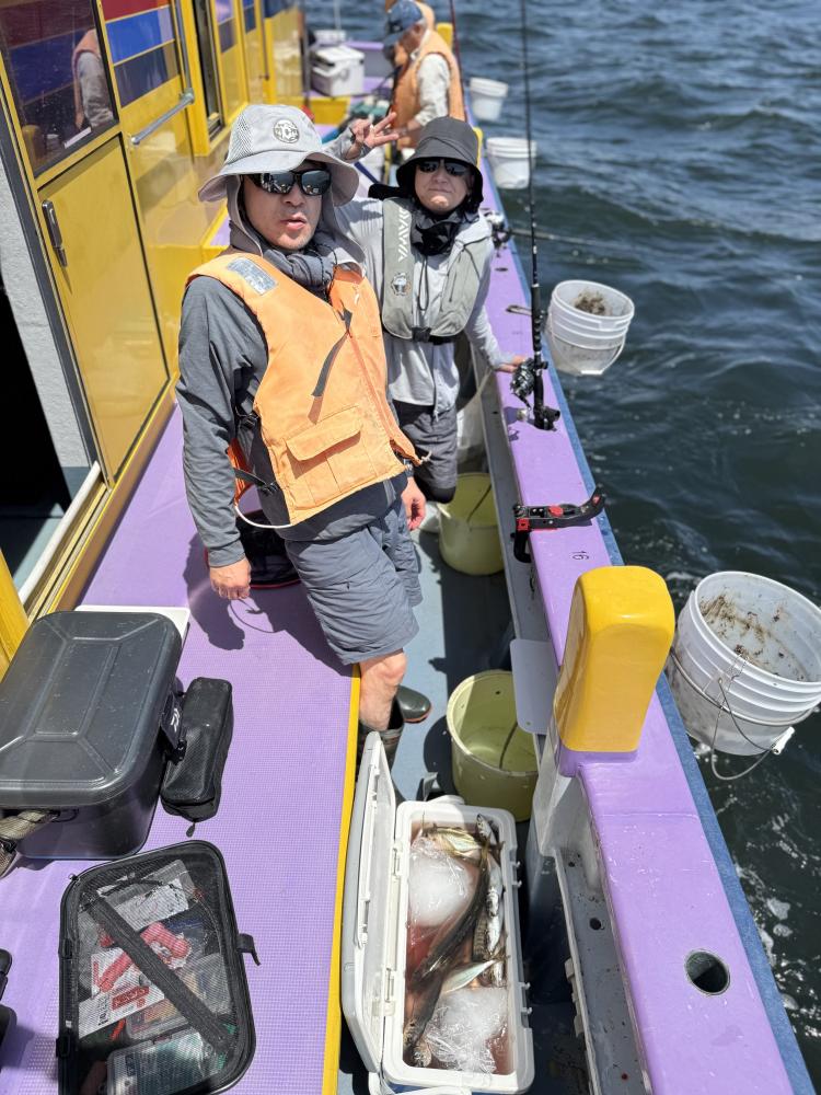 朝は港前から探索で〜後に沖の浅場へ合流させてもらいアタリはそこそこあったようですが、アタリだけで終わったり、掛けても取り込みでバレたりとなかなか船に上がらずで…。後半はアタリも遠退き猿島方面へ捜索でした。