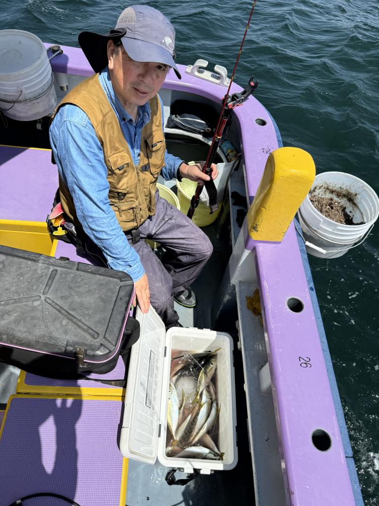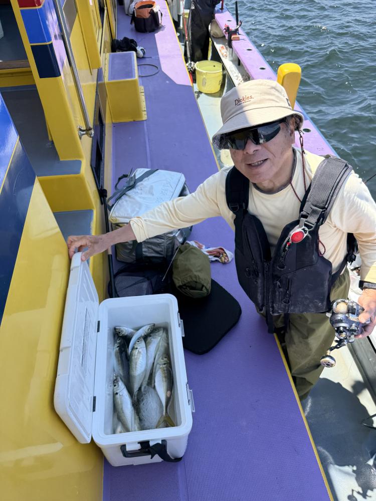 朝から沖へ。反応は確認できるものの反応の移動早く型見るばかりで…。後半になっても盛り上がりがなさそうな雰囲気だったので、猿島から港前周辺まで探索に行きましたが型見た程度でした。