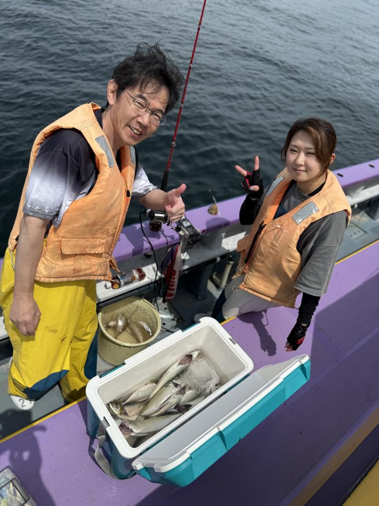 今日は朝イチから沖へ。好反応あり、前半はアタリバリバリ!掛け損ないやバラシも多く…。後半も反応だけは確認できていて、たまーにアタリだったり型見れたりと!