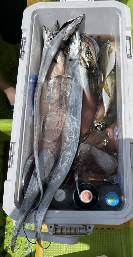 朝イチはチャンスタイムありで!中盤は反応にやる気がなくなってしまい一旦沖へ。潮が変わった後半はまた港前へ戻りましたが、汚れが酷く反応の判別が難しく型見たのみでした。1日通して釣れればメーター級以上が主体で、最大124センチの安浦ドラゴン筆頭にドラゴン、ドラゴン級と型がいいだけにおみやげバッチリでした!