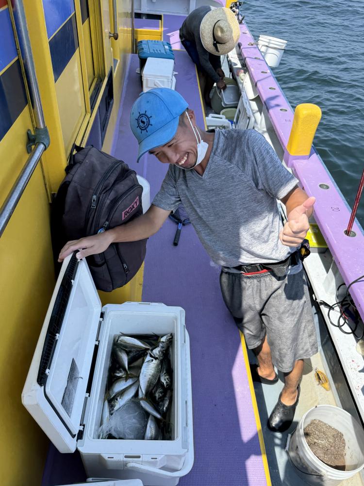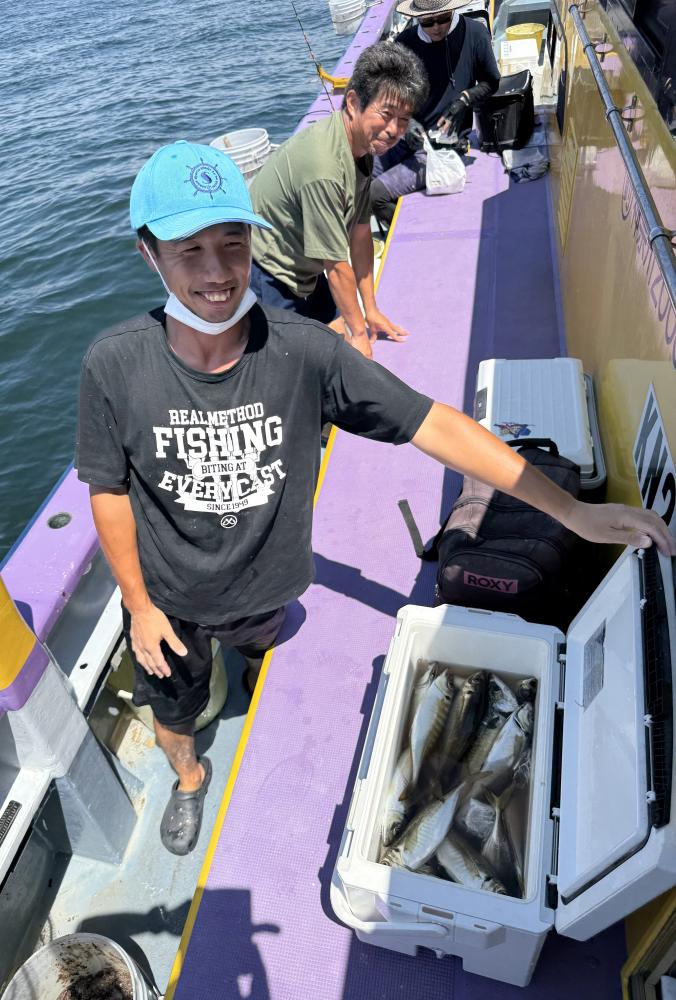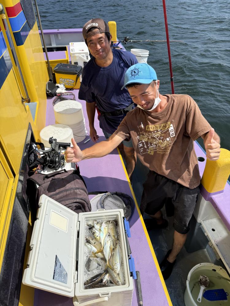 夏休み明け初日は様子見がてら沖からスタート!中〜良型主体でしたが、アタリ良く流すたびにポツリポツリだったり連チャンする人も!中盤に港前へ安浦ドラゴンの様子を見に行くと、反応は確認できるもののアタリ悪く尻尾切れでしたが、極太安浦ドラゴンはゲット!あとは釣れればメーター級主体に。後半は沖へ戻りサイズは混じりでしたがドラゴンもゲットでした!