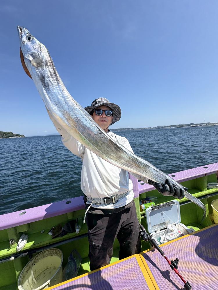 朝イチの安浦ドラゴン狙いは反応は確認できるもののアタリ渋く…それでも127センチの安浦ドラゴンゲットで!潮が効いてきても状況変わらずで沖へ。釣れればメーター級、ドラゴン級の時間もありましたが、掛け損ないや巻き上げ途中でのバラシ多めで、なかなか船に上がらずで〜ラストにチャンスタイム突入!サイズは混じりでしたが、ハマった人は連チャンで!