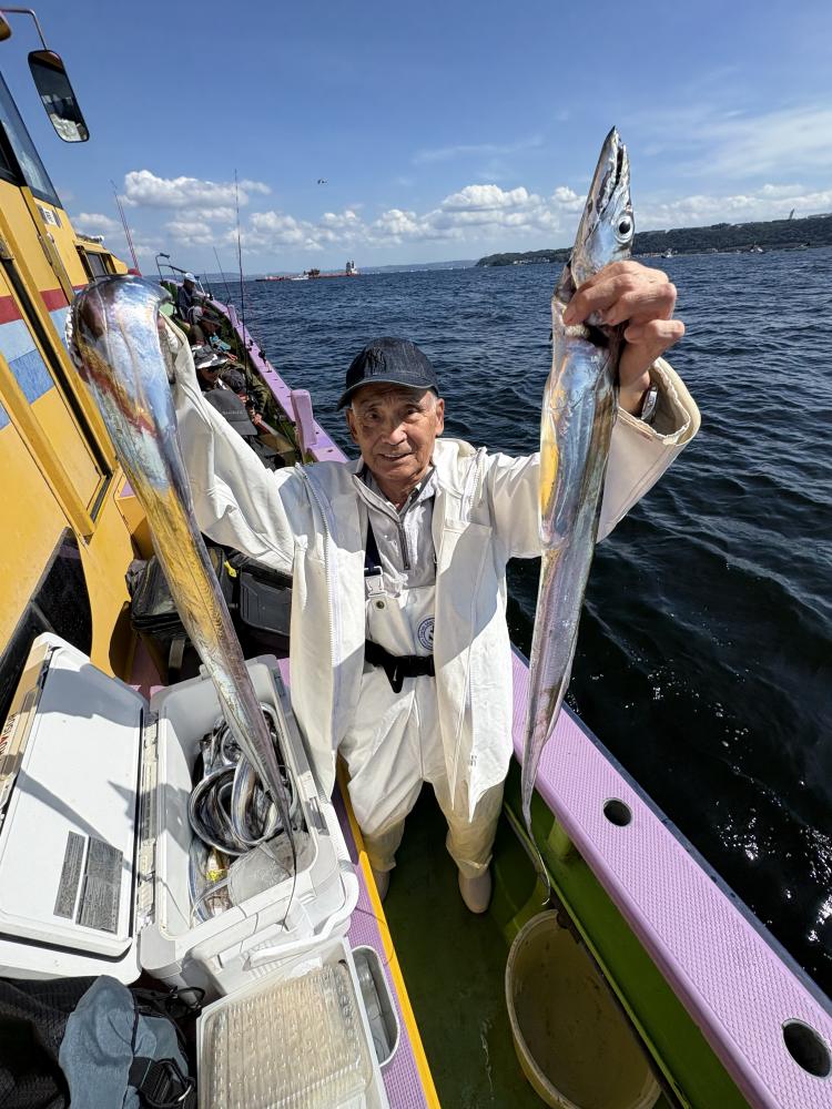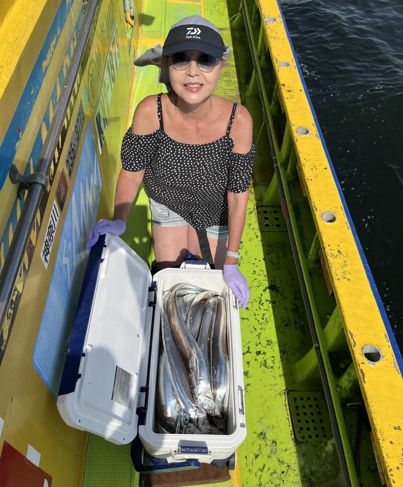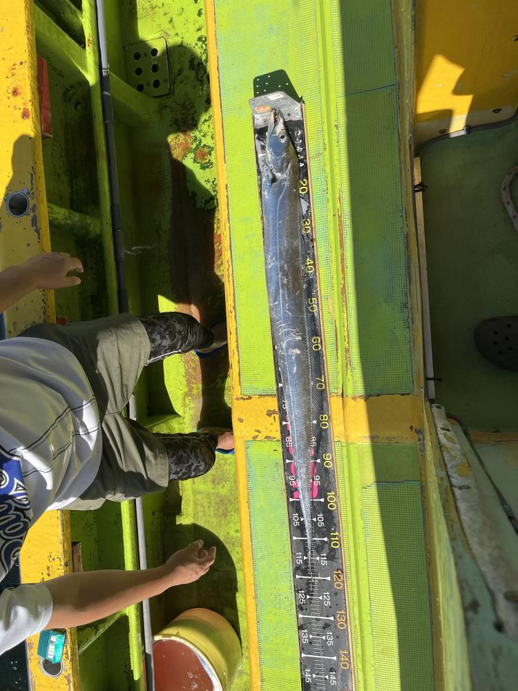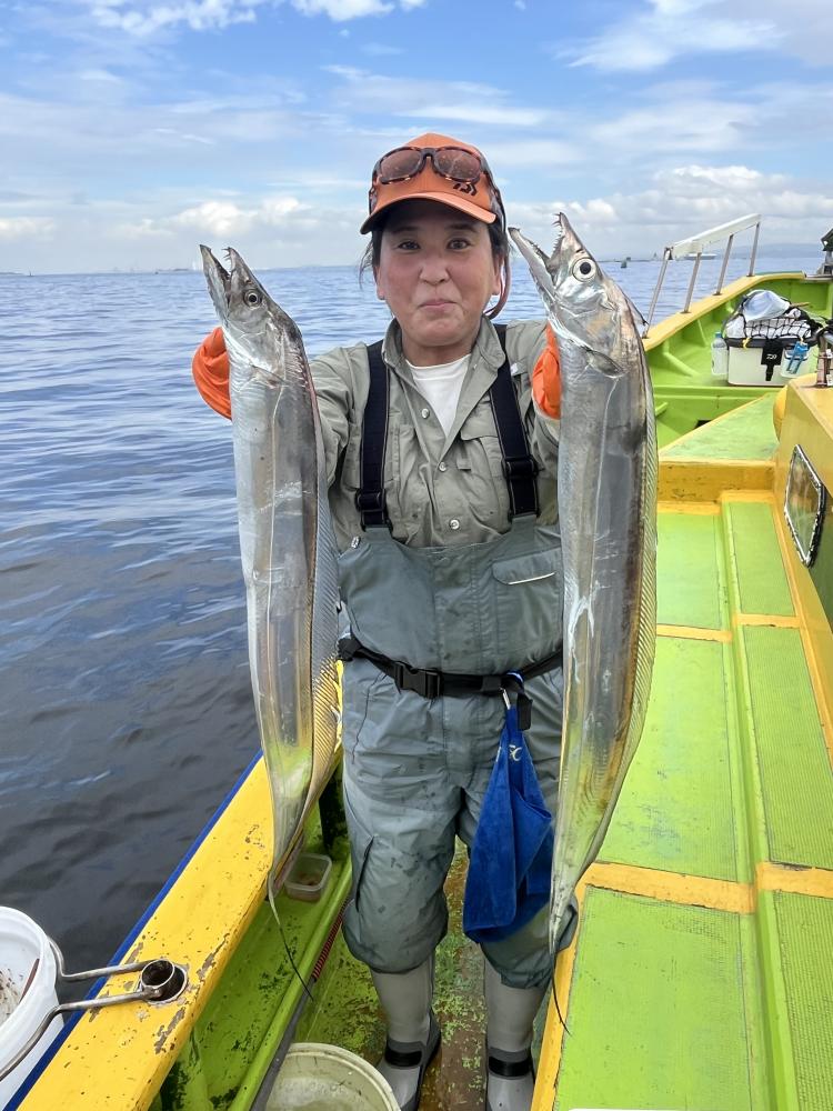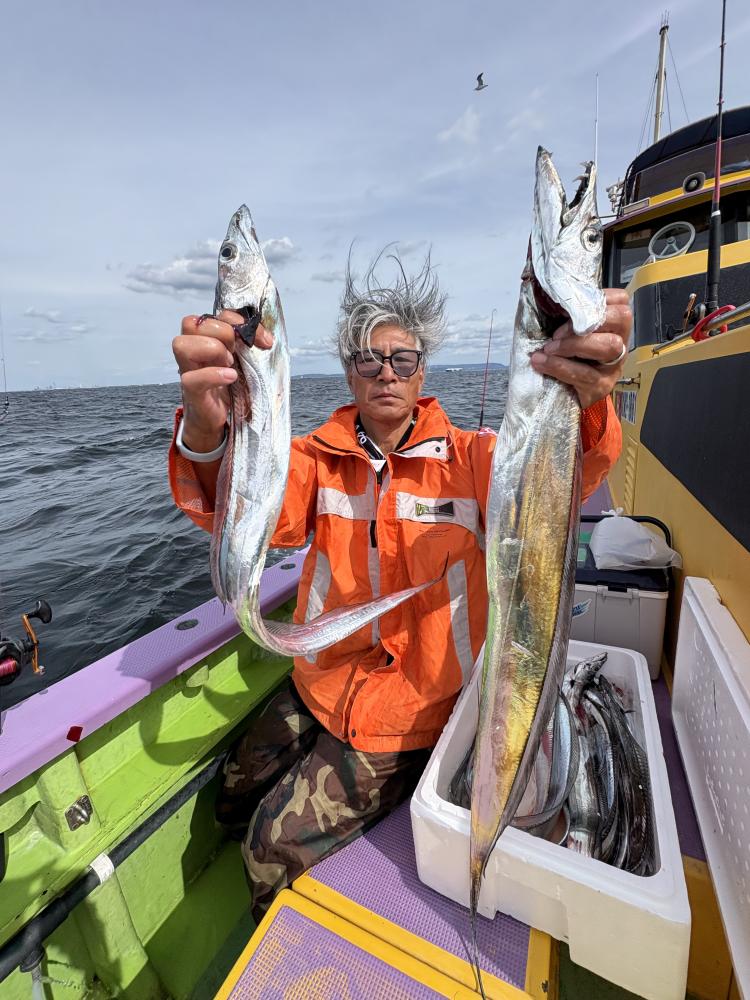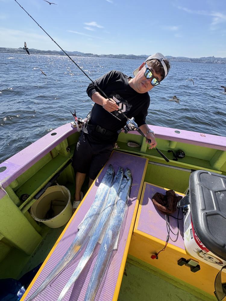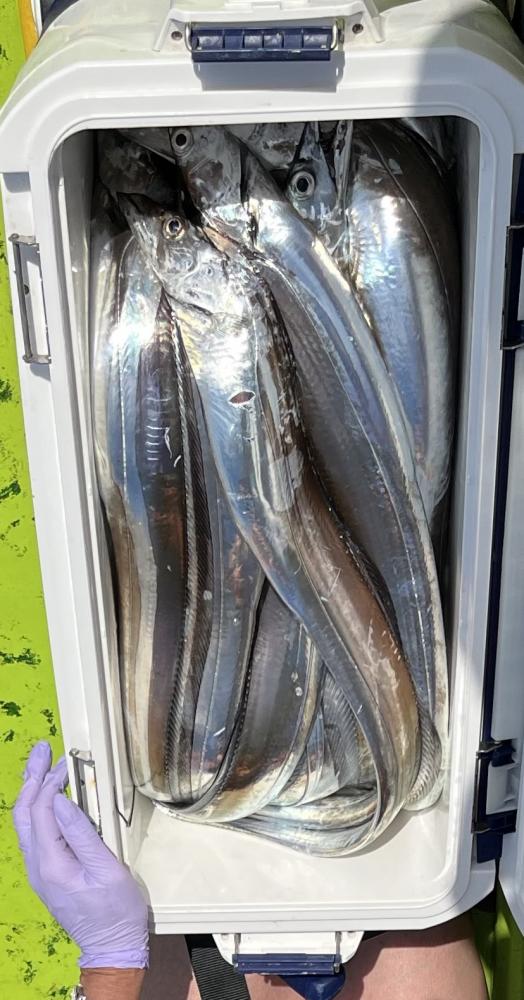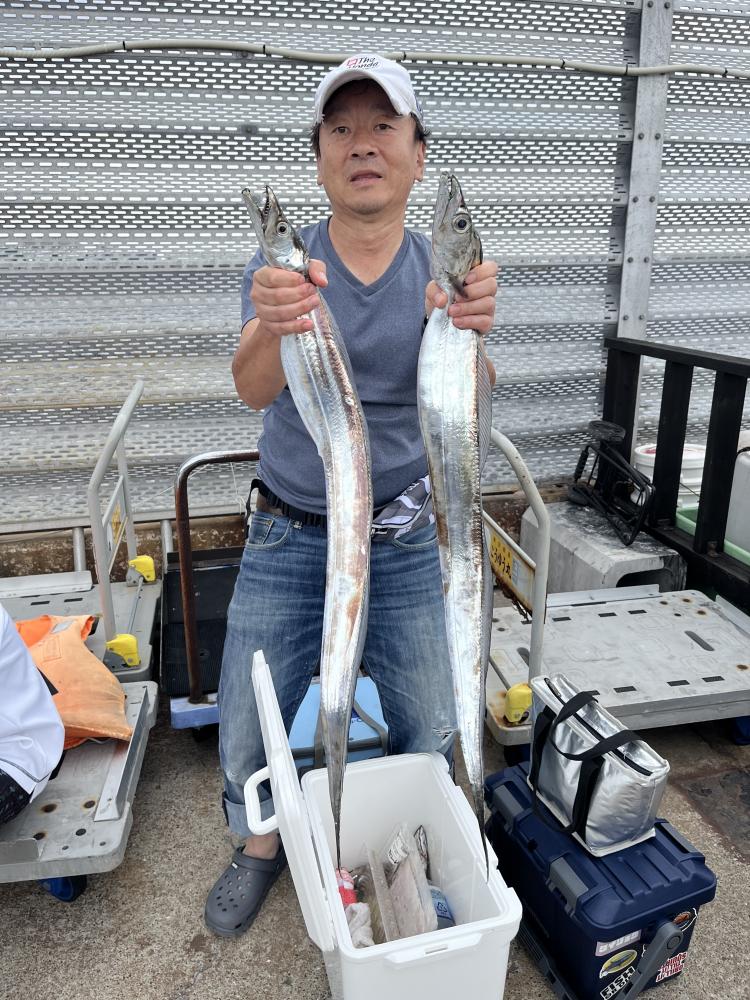 そんな中、右舷は娘さん、左舷は男性の方が仲間へのサポートもあり全員タチウオゲット出来ました⭕️