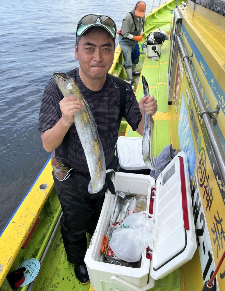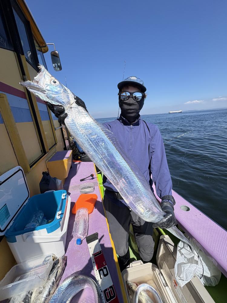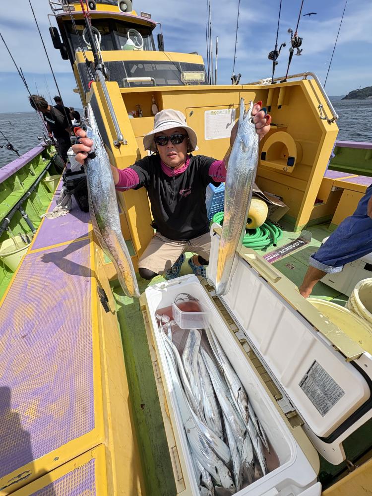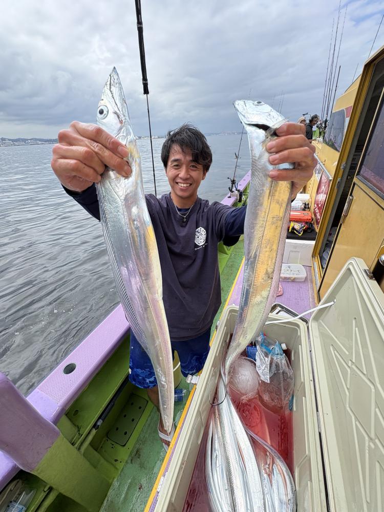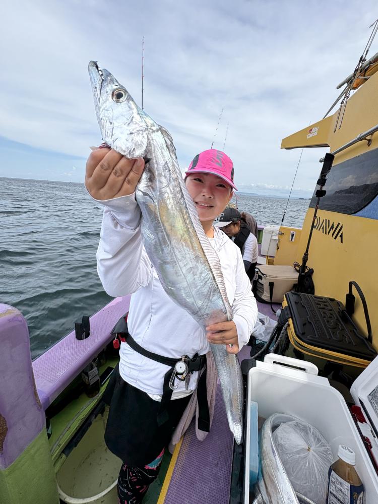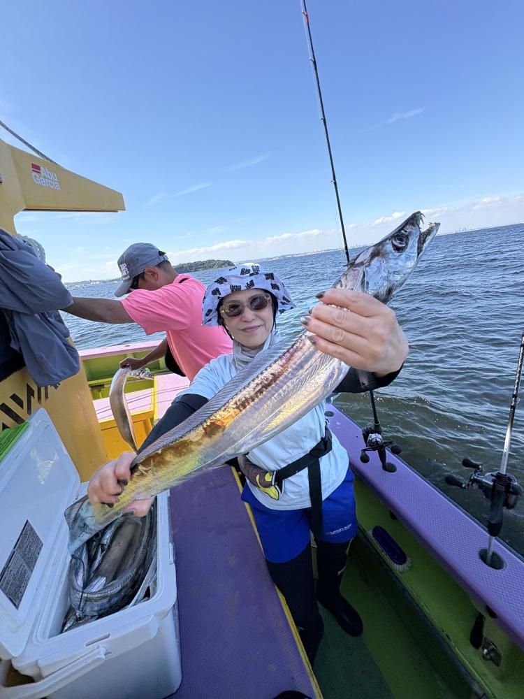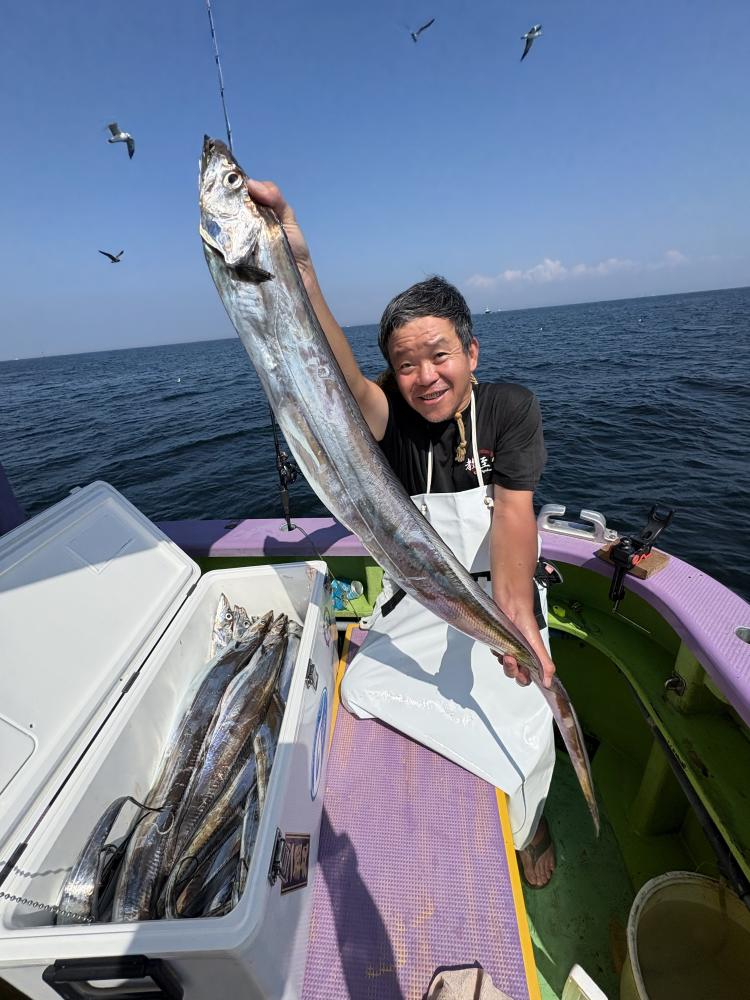そんな中、右舷は娘さん、左舷は男性の方が仲間へのサポートもあり全員タチウオゲット出来ました⭕️