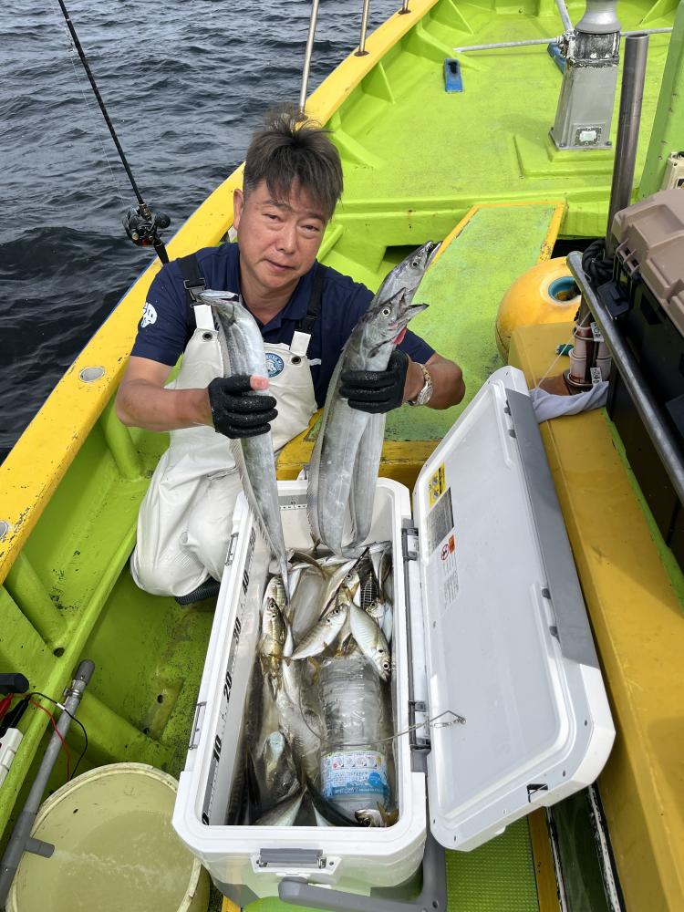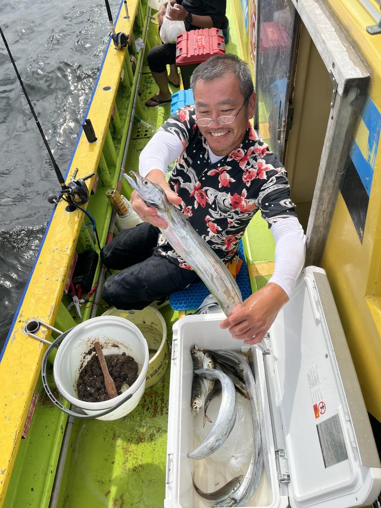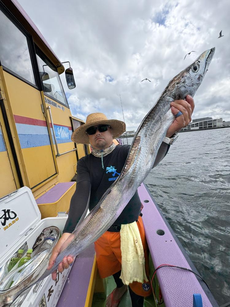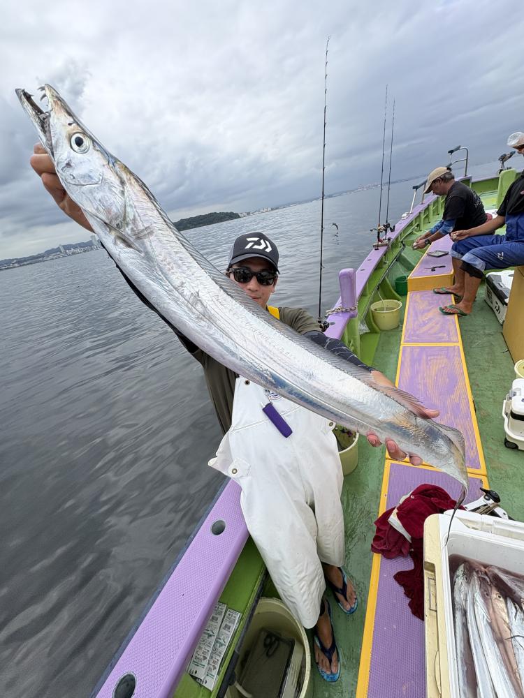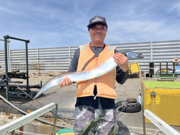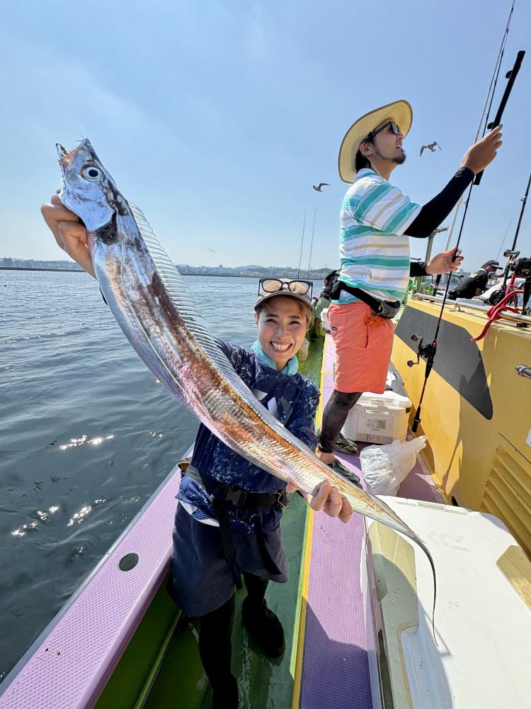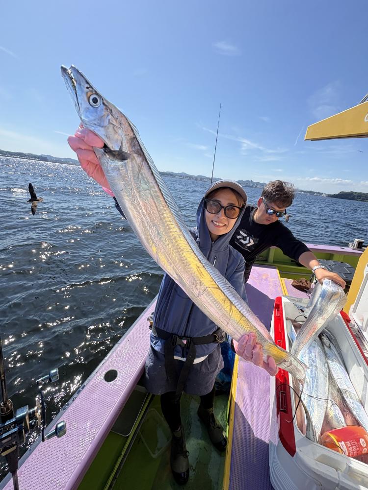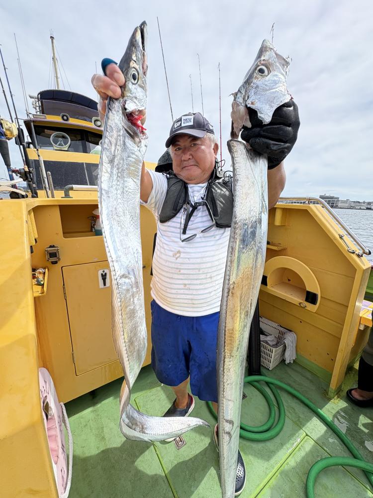 そんな中、右舷は娘さん、左舷は男性の方が仲間へのサポートもあり全員タチウオゲット出来ました⭕️