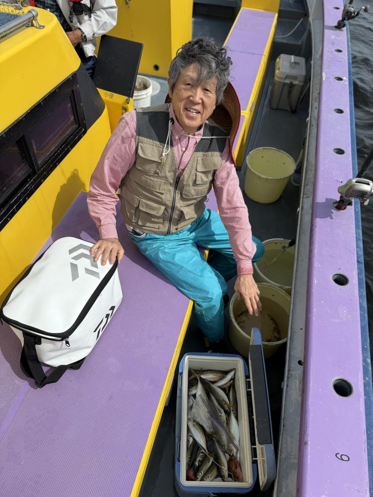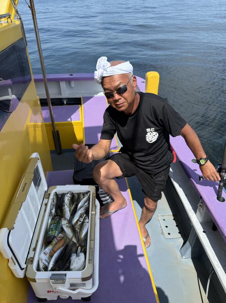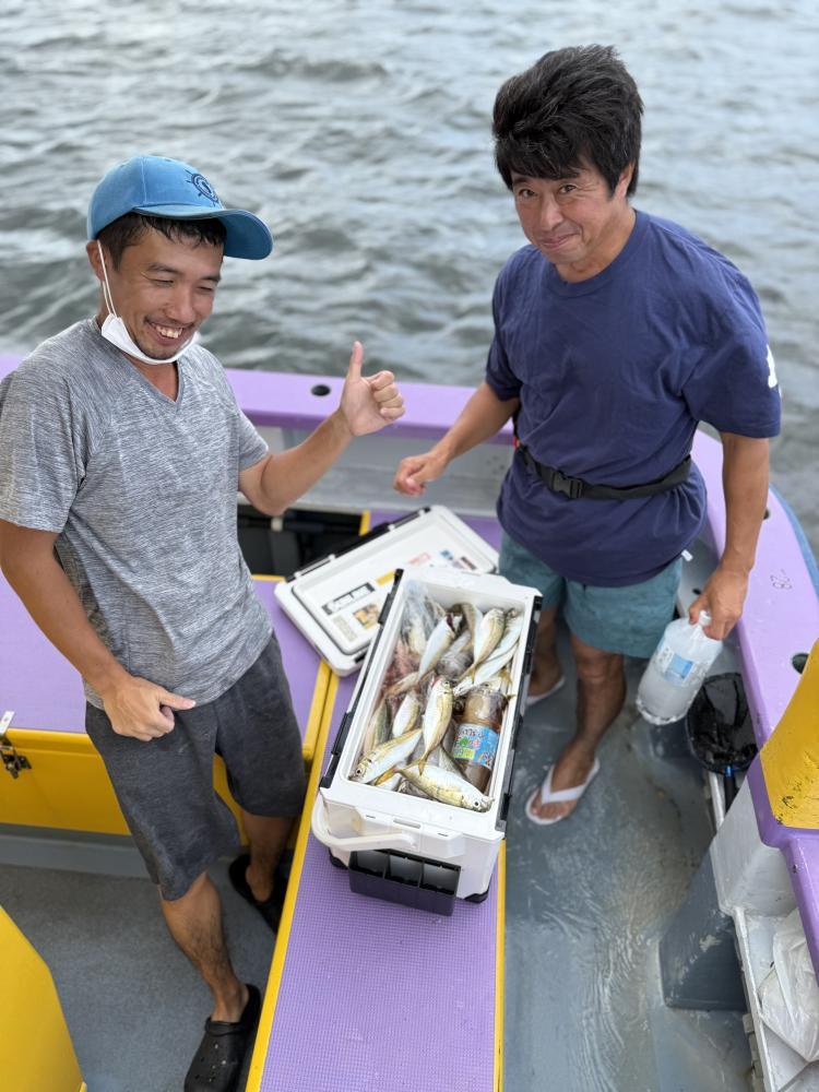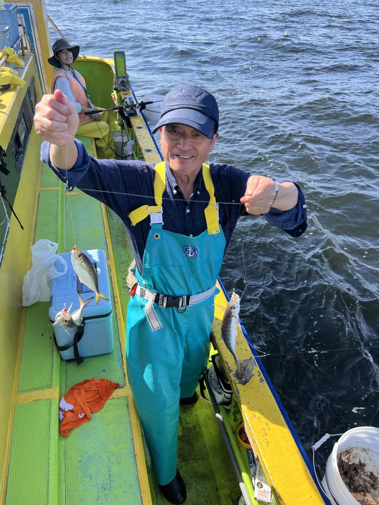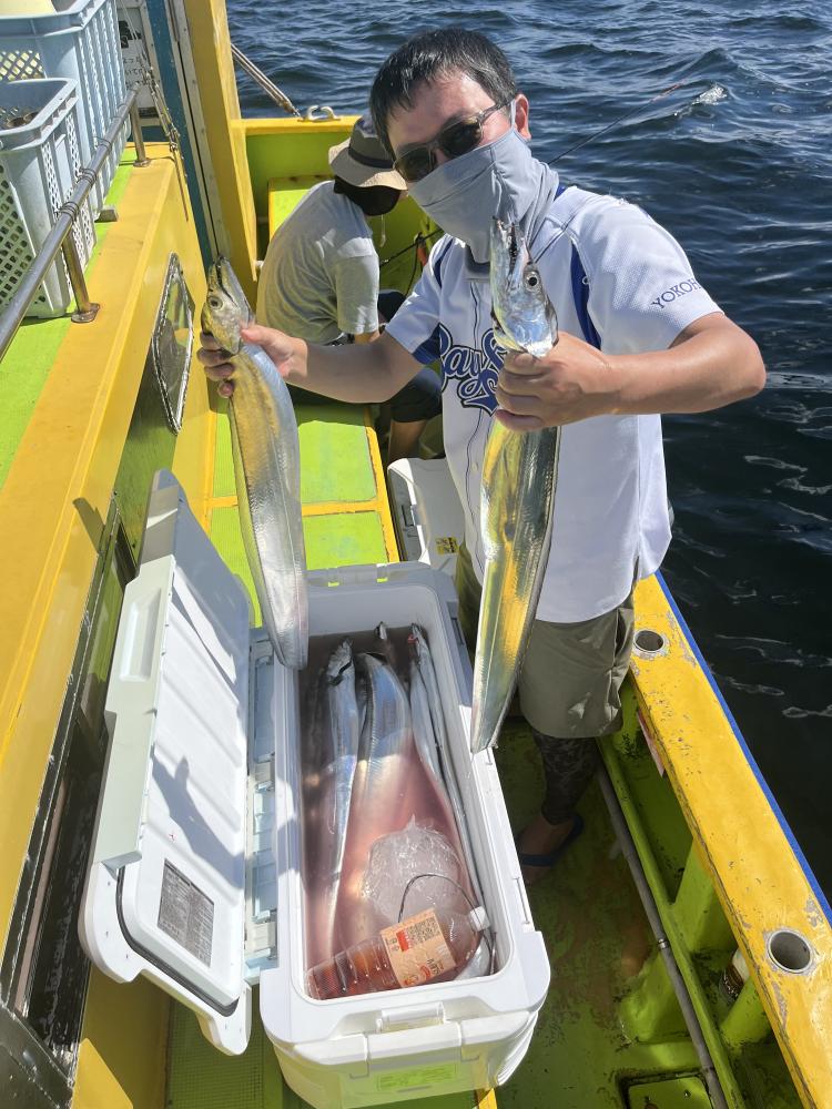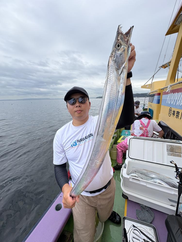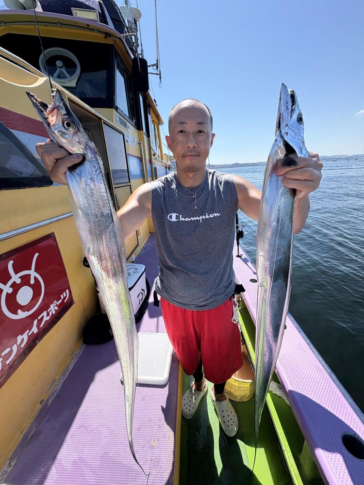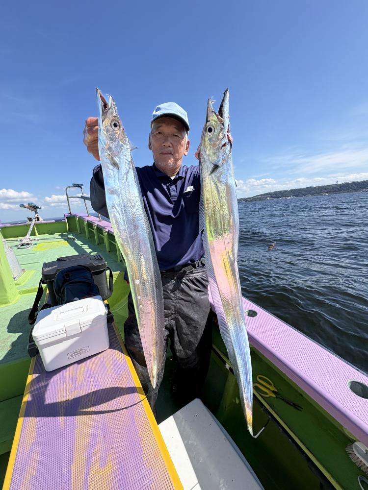 そんな中、右舷は娘さん、左舷は男性の方が仲間へのサポートもあり全員タチウオゲット出来ました⭕️