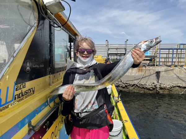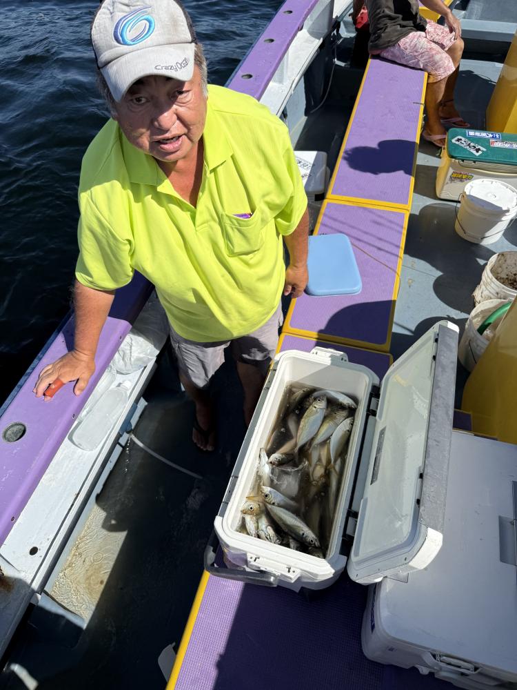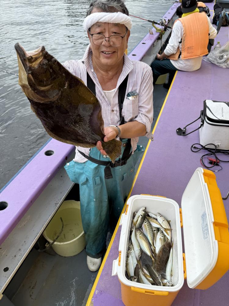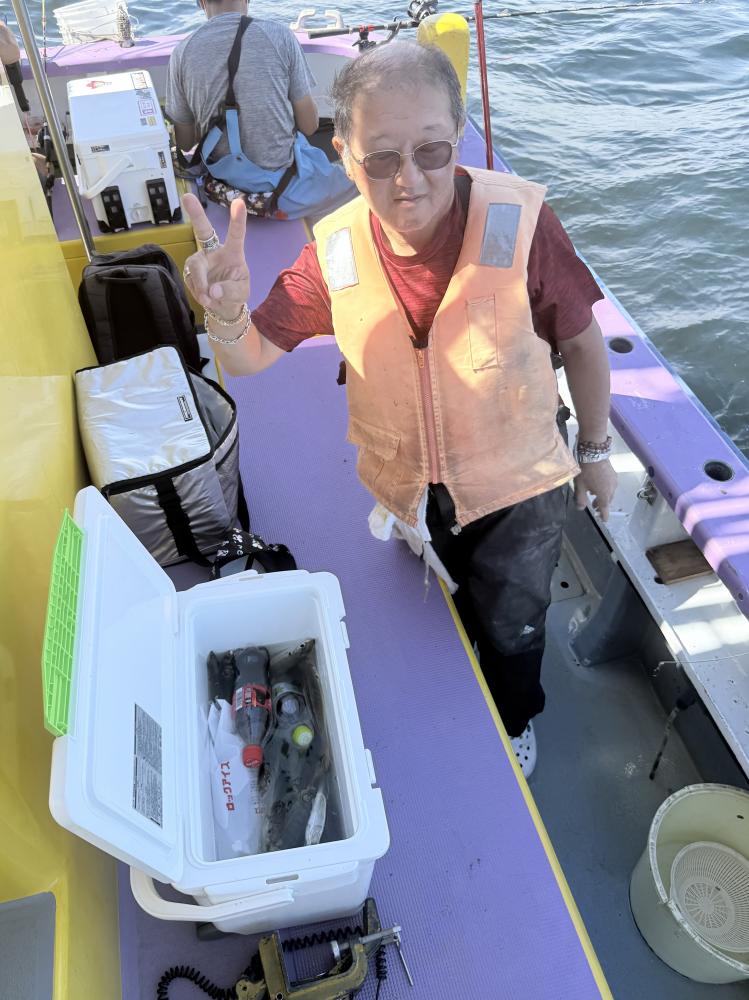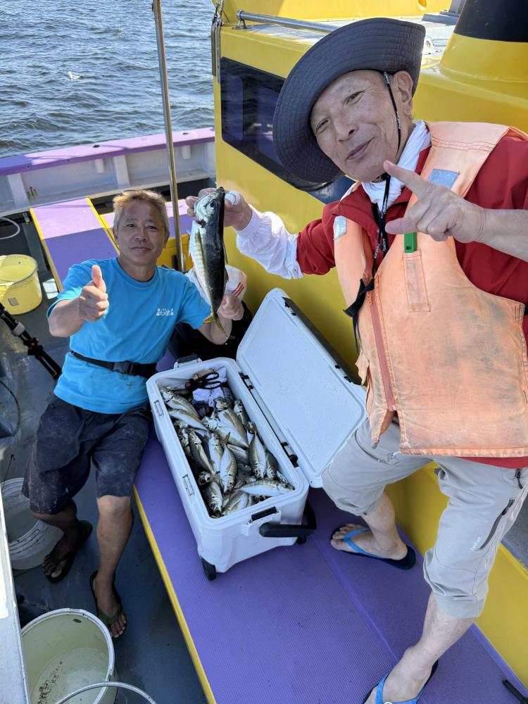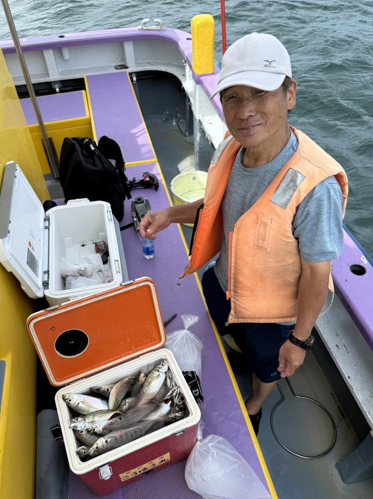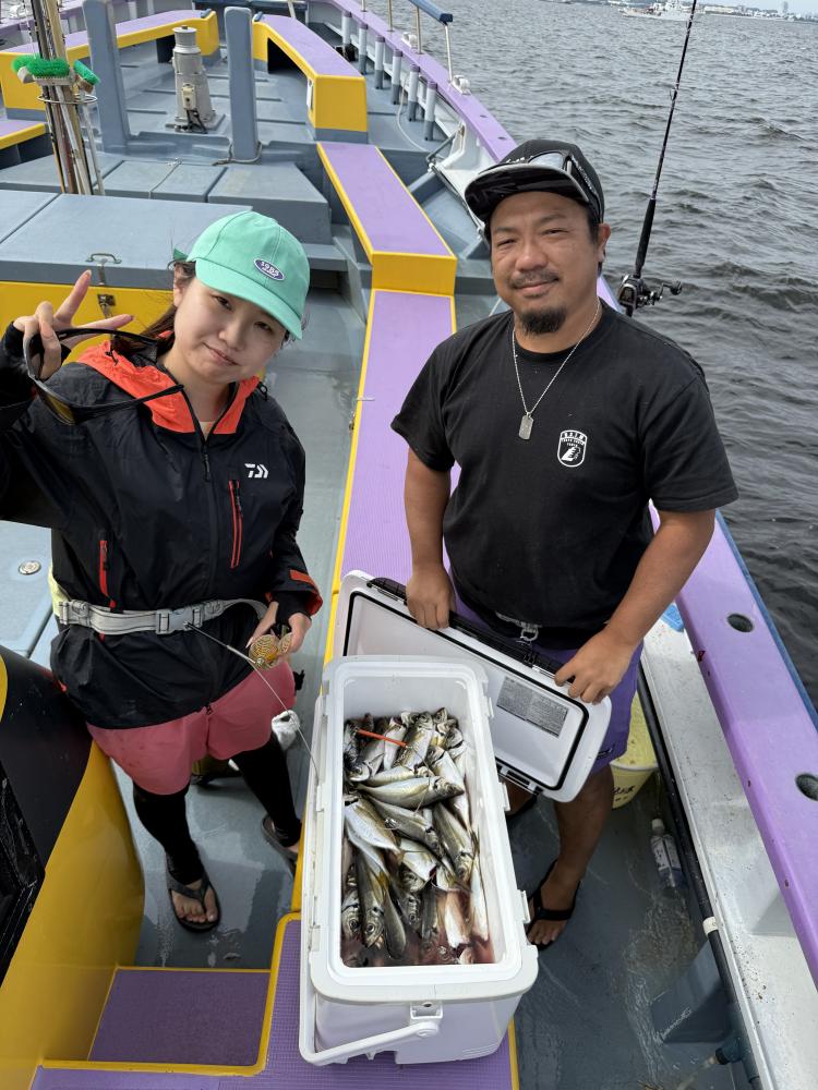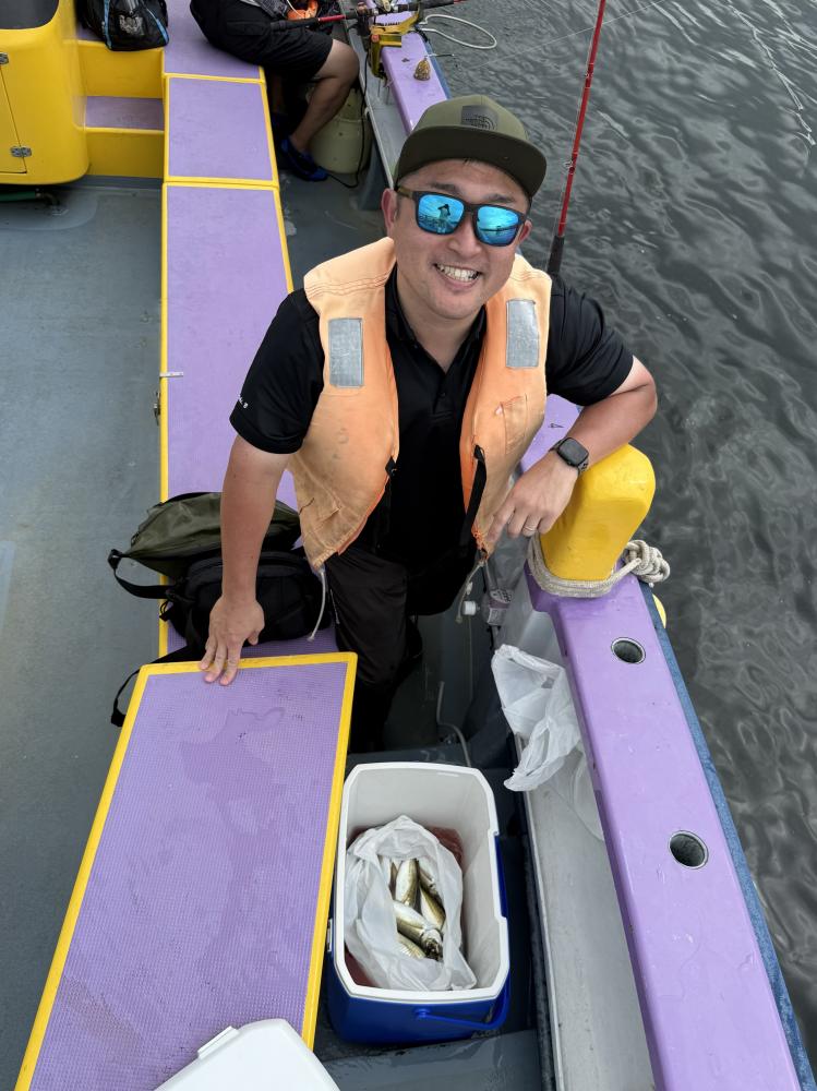 そんな中、右舷は娘さん、左舷は男性の方が仲間へのサポートもあり全員タチウオゲット出来ました⭕️