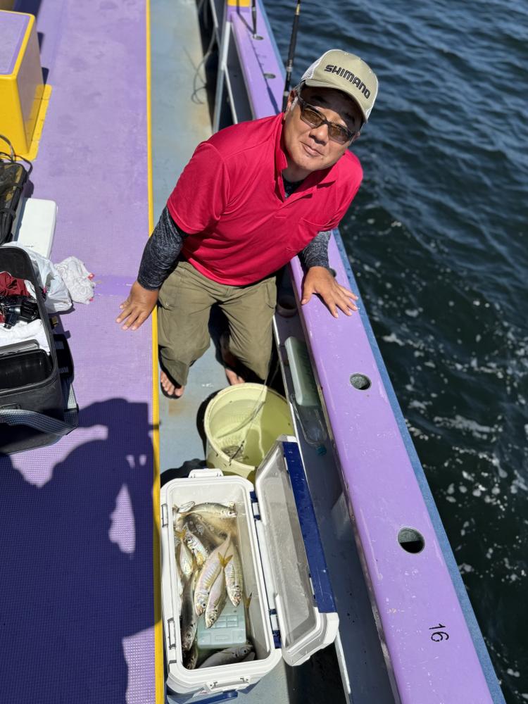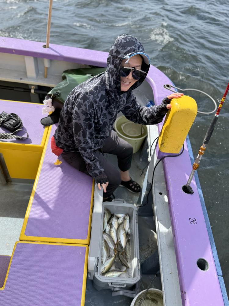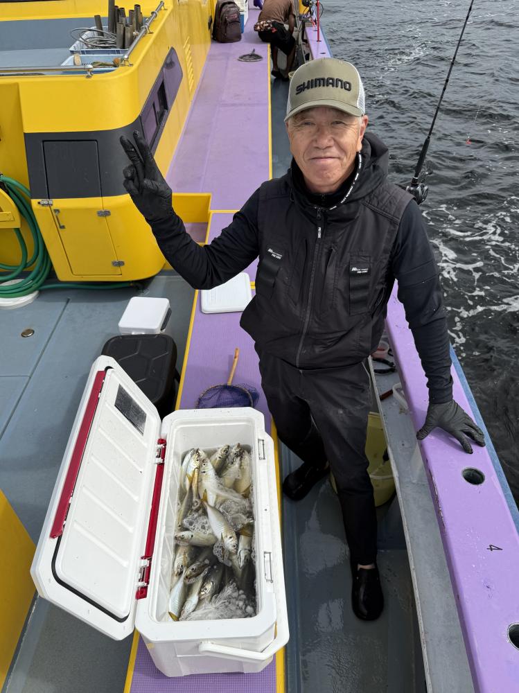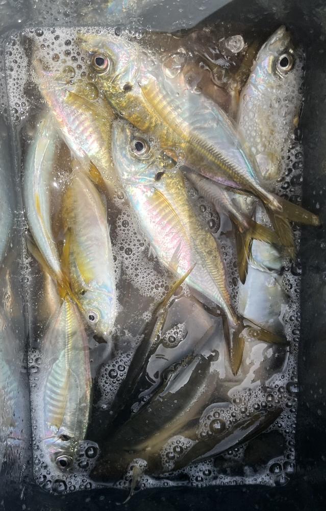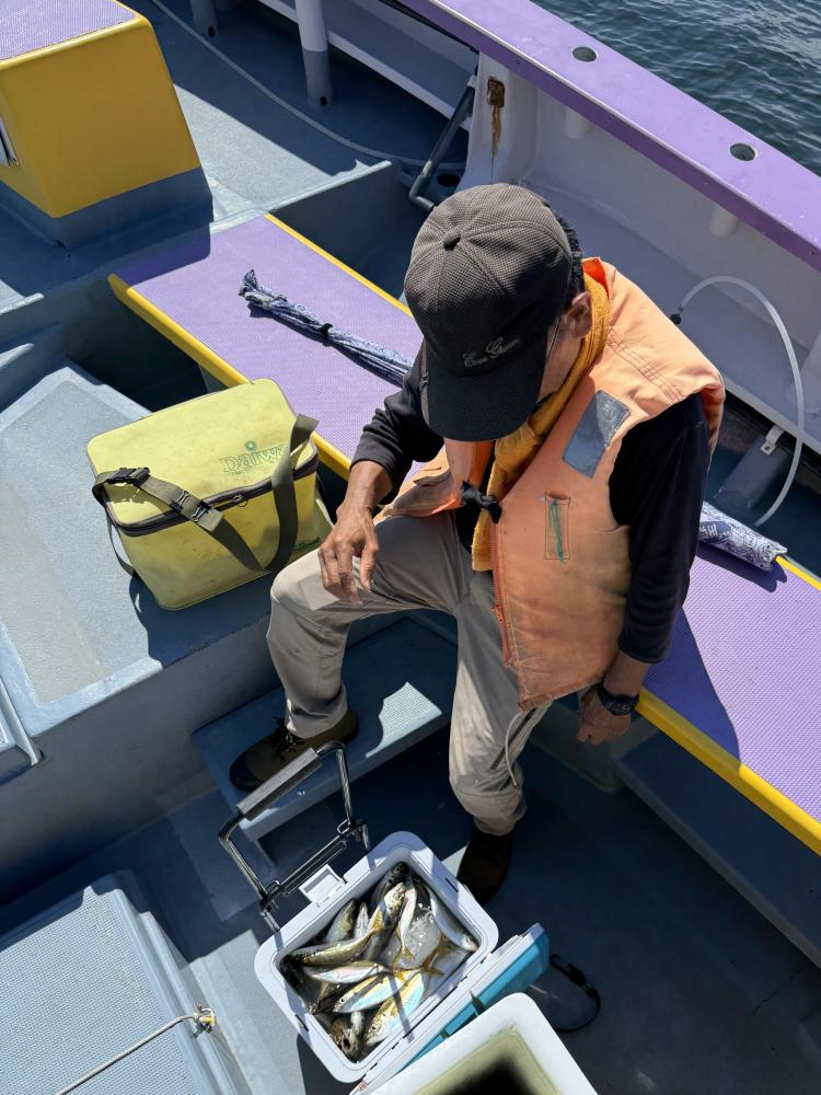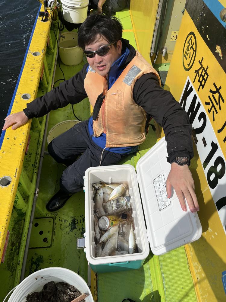 相変わらず北風で海は波がポチャポチャなので、後半アジですが、レンタルロッド多数にアジ釣りレクチャーもあるので一旦帰港してロッドチェンジにレクチャー後に再び出船して猿島金アジポイントへ❗️短時間でしたが、皆さんお土産位は取れました⭕️