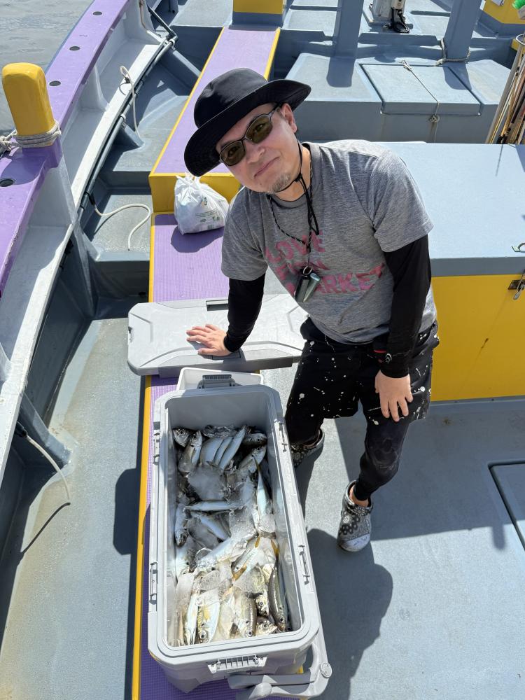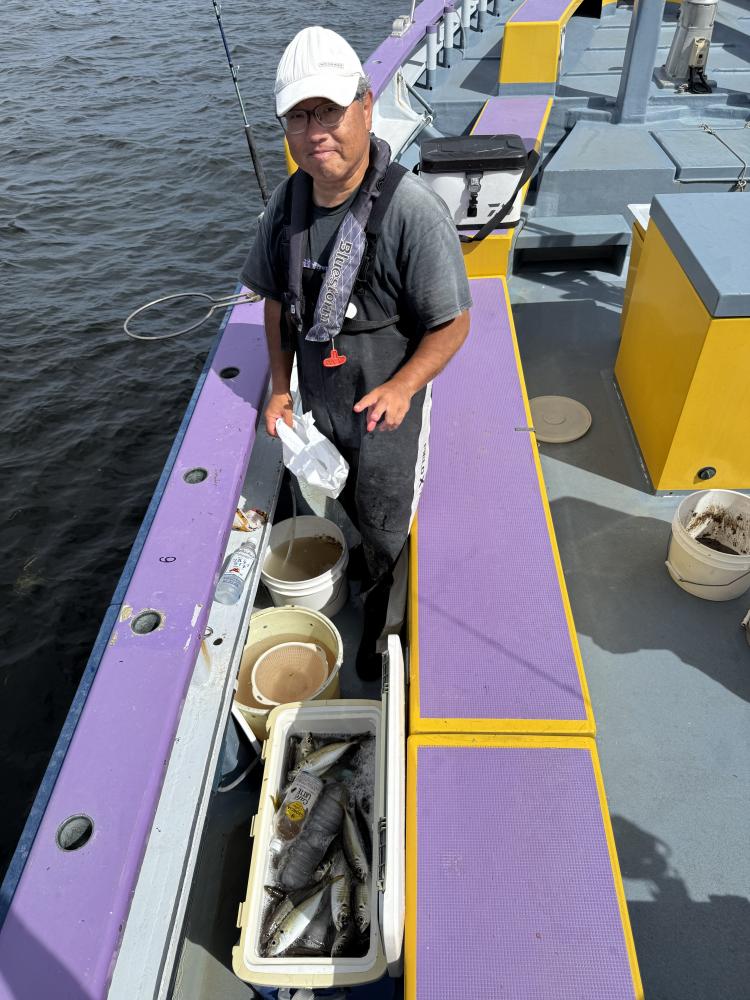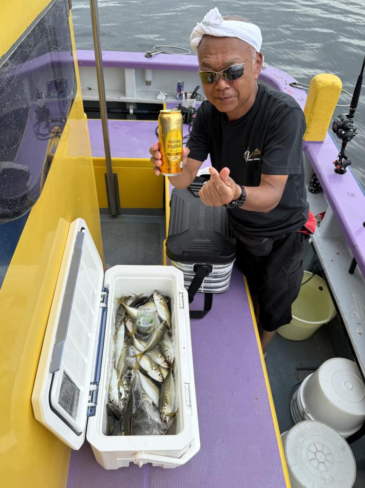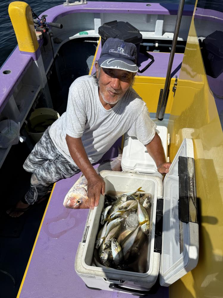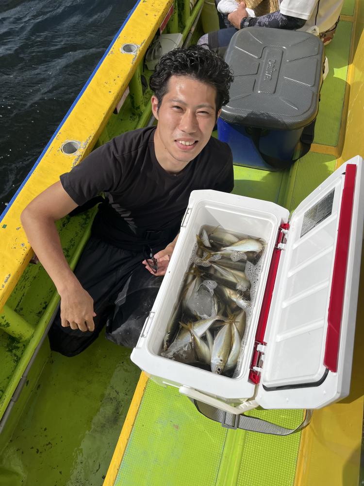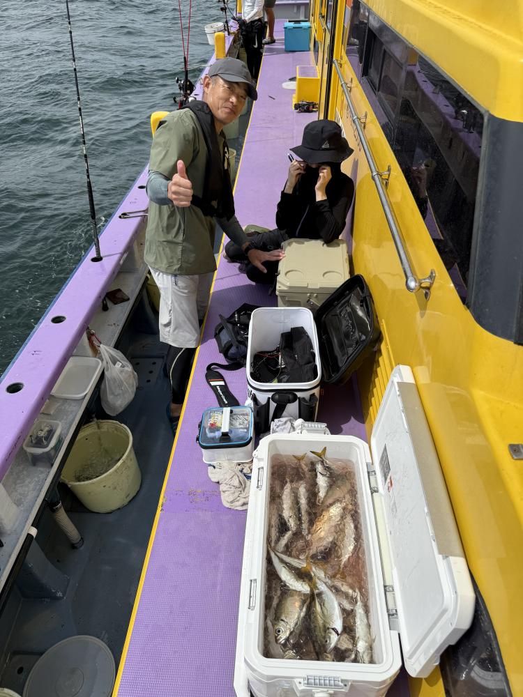 相変わらず北風で海は波がポチャポチャなので、後半アジですが、レンタルロッド多数にアジ釣りレクチャーもあるので一旦帰港してロッドチェンジにレクチャー後に再び出船して猿島金アジポイントへ❗️短時間でしたが、皆さんお土産位は取れました⭕️