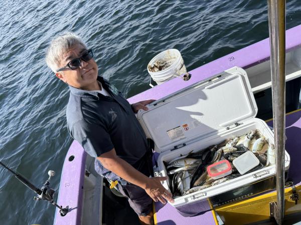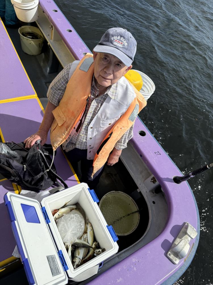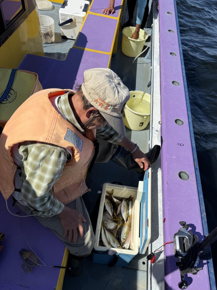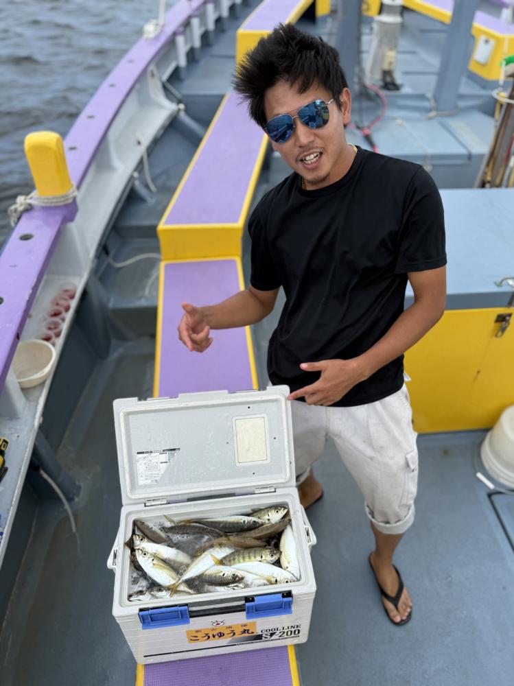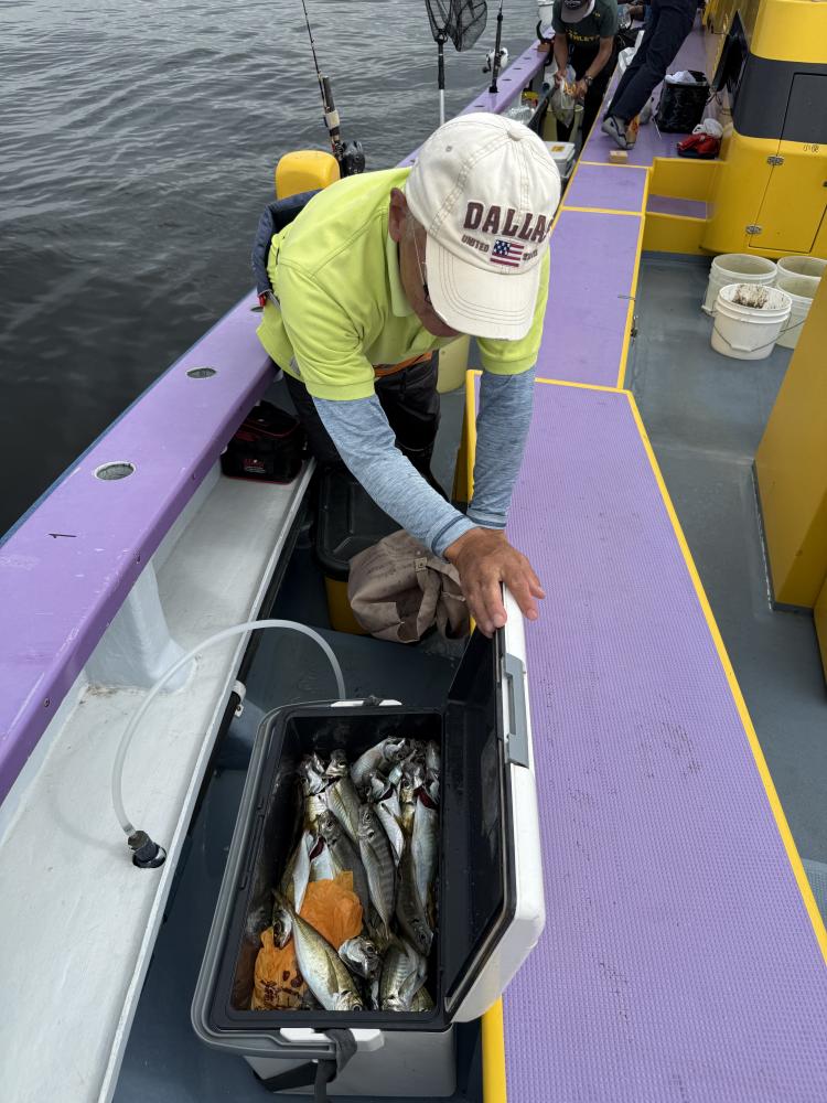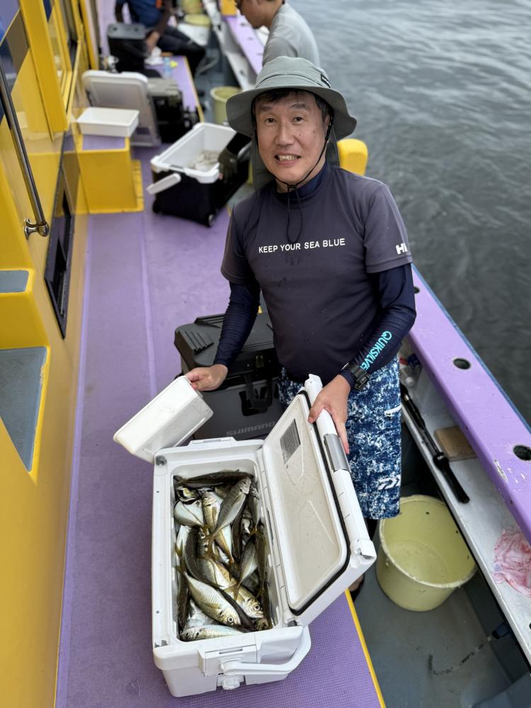 相変わらず北風で海は波がポチャポチャなので、後半アジですが、レンタルロッド多数にアジ釣りレクチャーもあるので一旦帰港してロッドチェンジにレクチャー後に再び出船して猿島金アジポイントへ❗️短時間でしたが、皆さんお土産位は取れました⭕️
