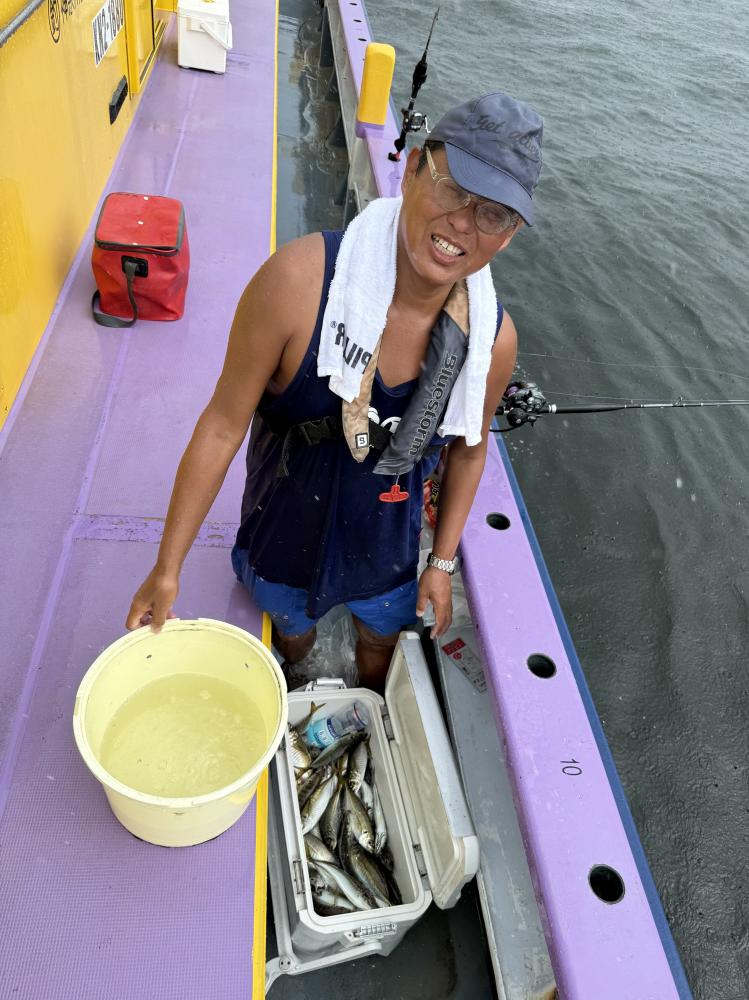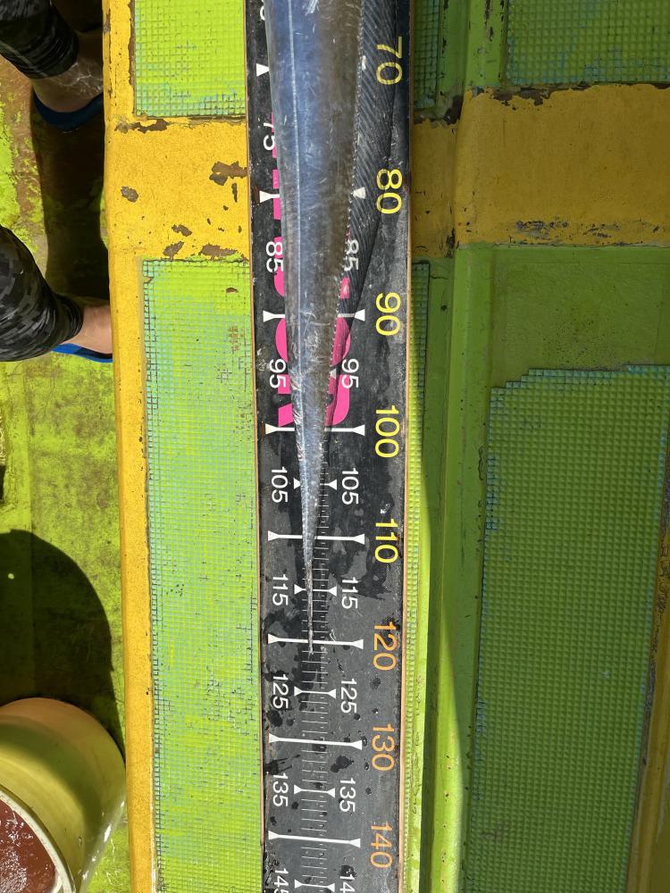 朝イチ港前を探索しているうちに台船西解放になり、転々と反応見ながらで〜今日はどこでも平均サイズ良くメーター級、ドラゴン級、ドラゴン多数!時間前にイワシ切れでした。138センチ、131センチとスーパードラゴン2本ゲットの人も!