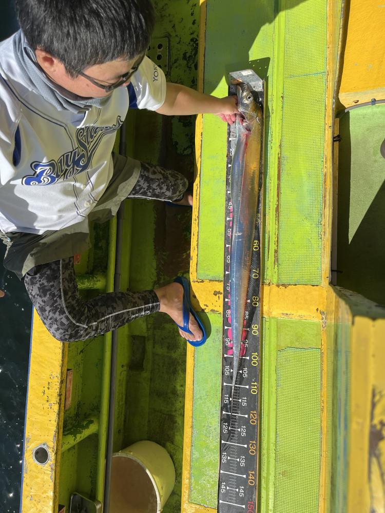 朝イチから沖へ。昨日までの活性なく?中型からメーター級まで混じりでしたがアタリ出せる人はポツリ〜ポツリと!ラストは型狙いで安浦ドラゴン探索へ。最大124センチでした!
