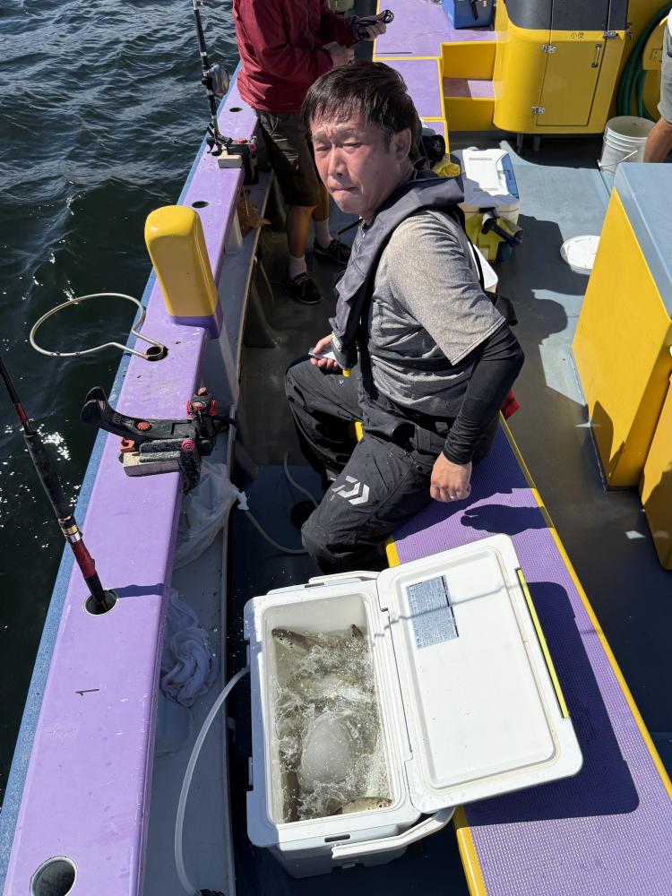 朝イチから沖へ。チャンスタイムからスタートで、ポツリ〜ポツリと型を出し、ドラゴン級も!その後は転々と型見るばかりでしたが、潮のよどみくらいからドラゴン級、ドラゴン率アップ!最大129センチ!肉厚な個体多めで、1人でドラゴン数本ゲットの人も〜!
