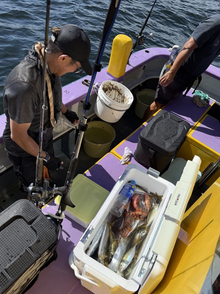 下潮で流れながらアタリは適度にあり〜釣れればドラゴン混じり!後半上潮でアタリ増えましたが、1日通して掛け損ない、取り込みでのバラシ多く…。