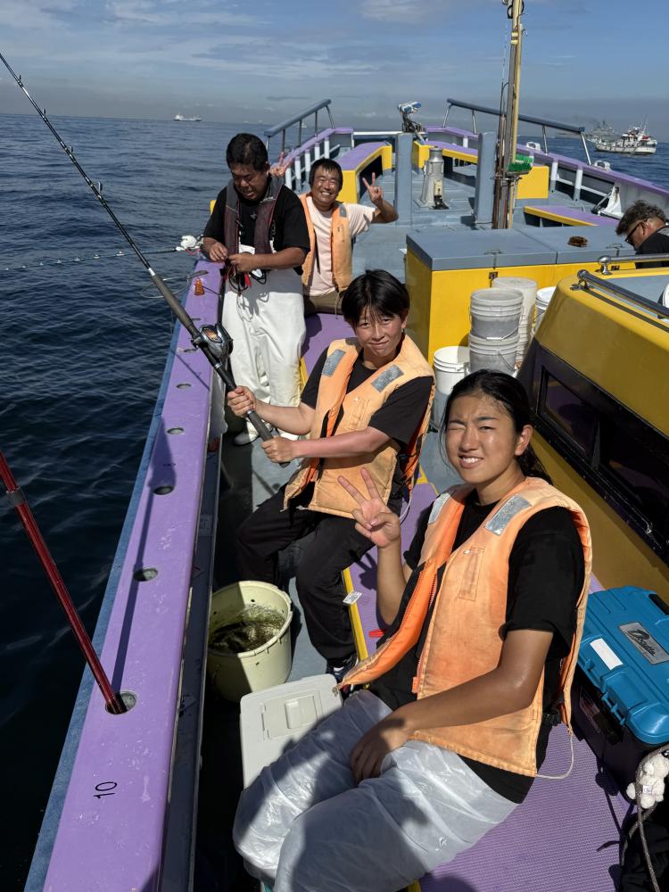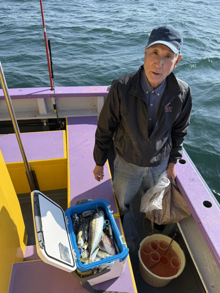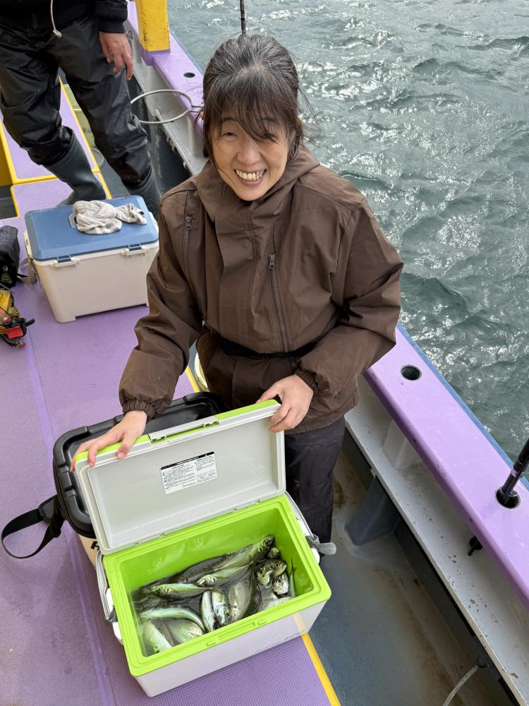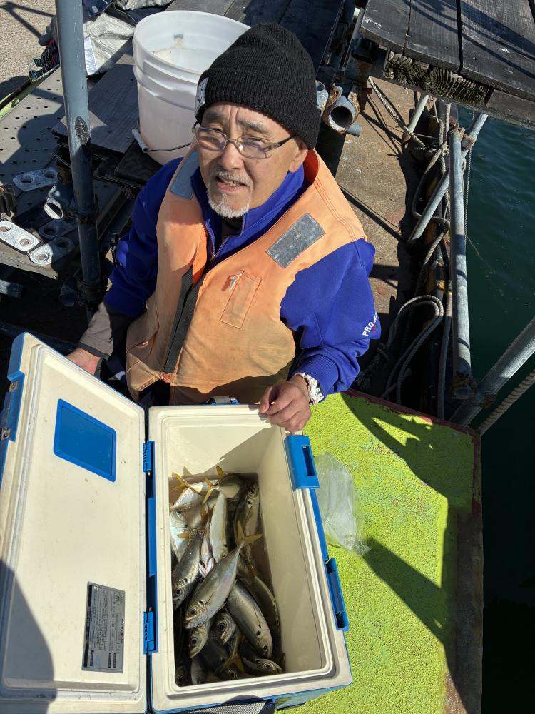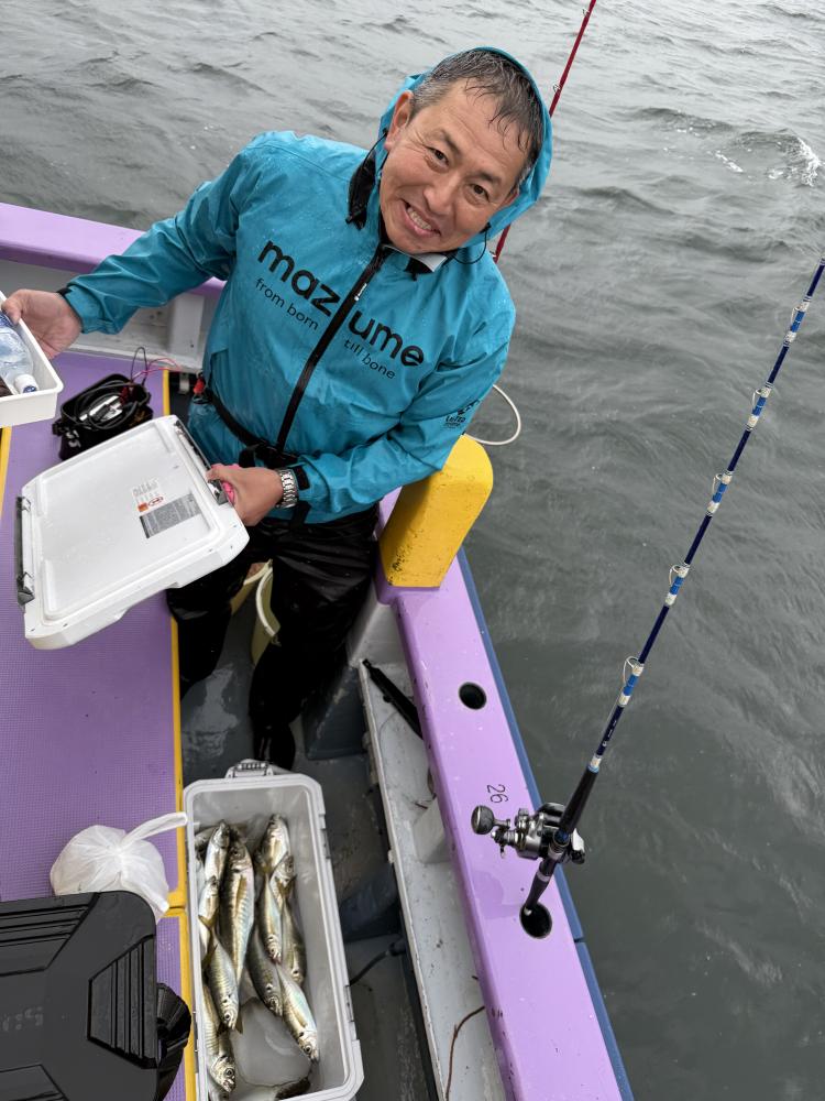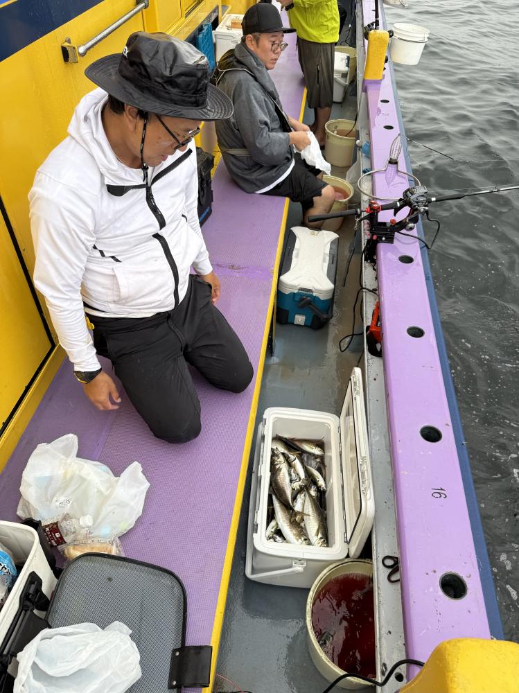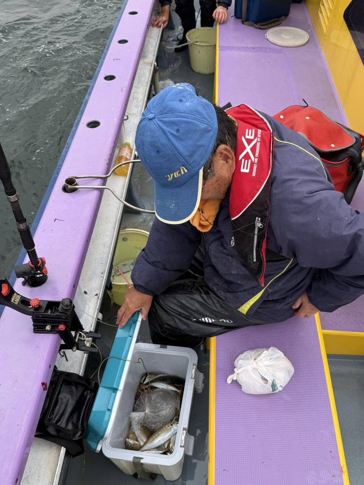 テンヤデビュー戦の「娘さん」「お兄ちゃん」が多数、港でイワシ餌の付け方からロッドアクションのレクチャー後の出船となりました