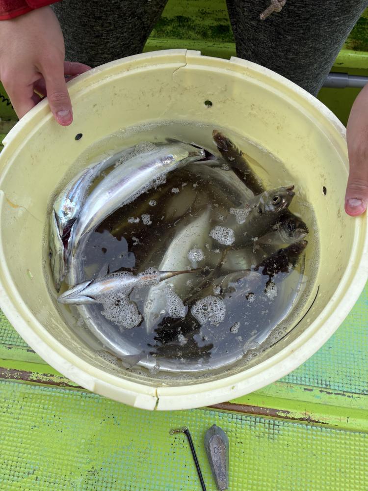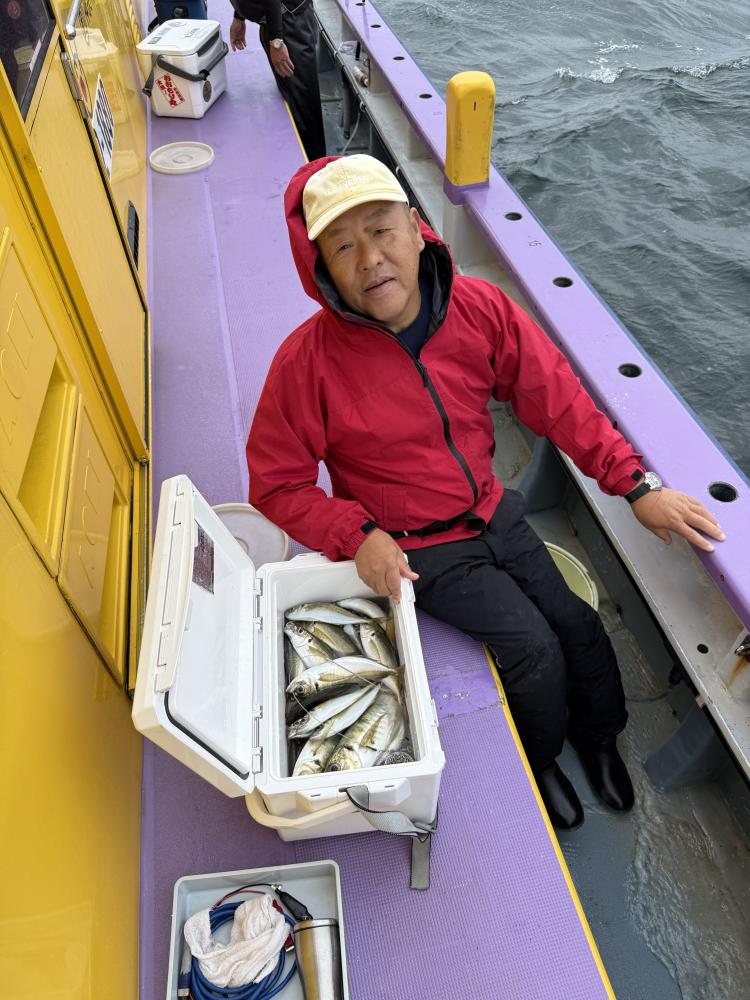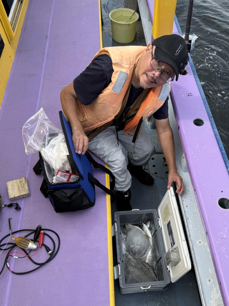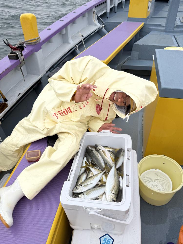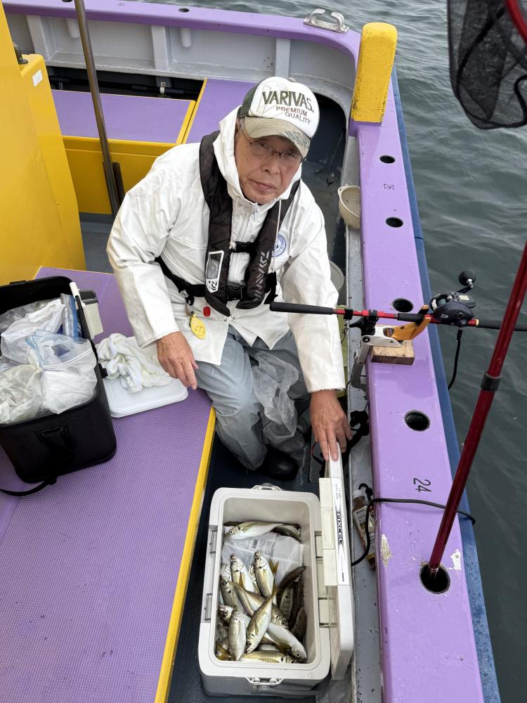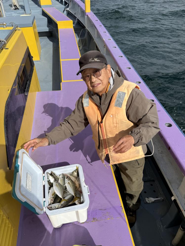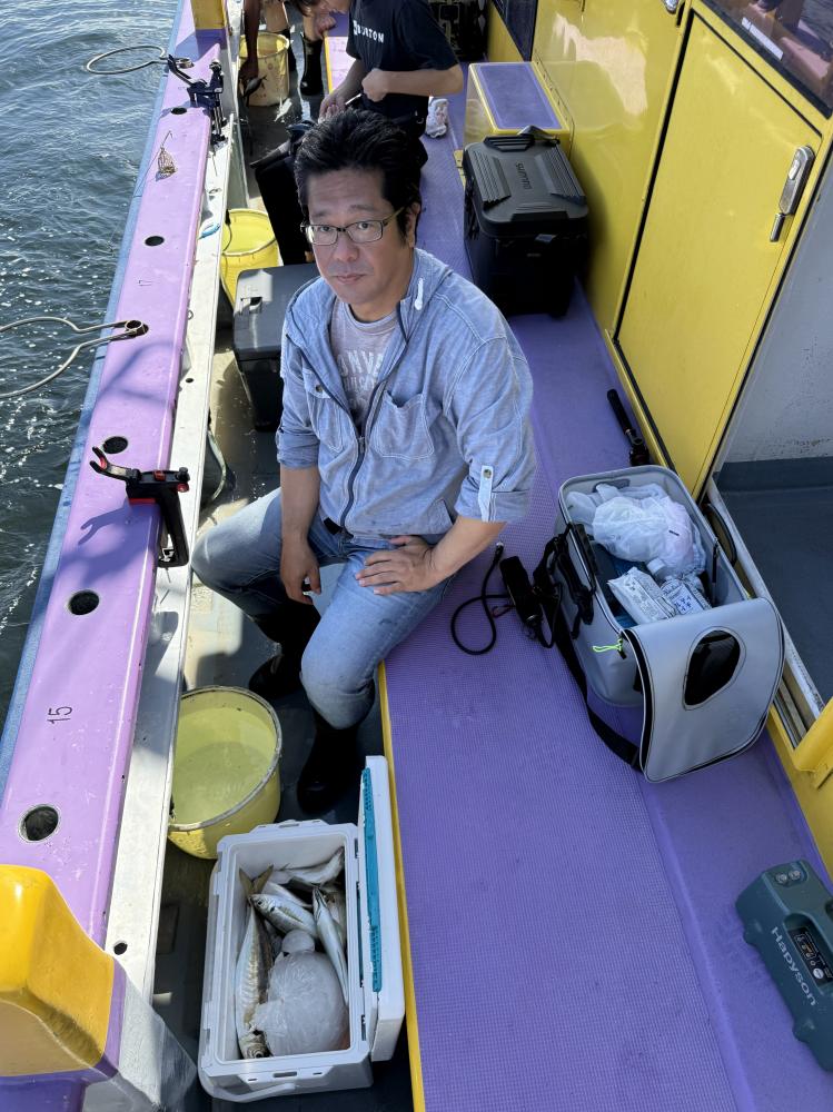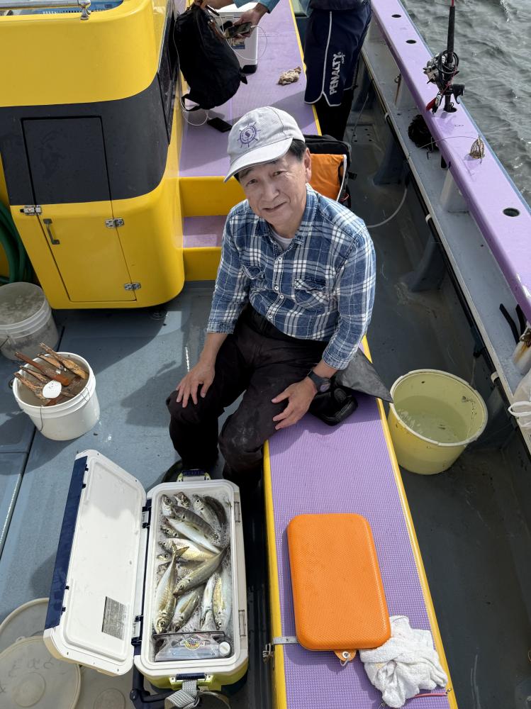 10時45分にタチウオ狙いは終了して、ナギの海上で、レンタルテンヤロッド多数の片付けからレンタルアジロッド多数の支度、ロッドキーパーの取り付けから電源接続、猿島金アジポイントで釣り方レクチャーからの実釣までの取次ぎ時間は1時間20分のアジ釣り開始時間は11時05分となりました、沖上がり時間まで1時間55分とポイント探索時間も限られてある中、実釣開始、反応が入って来ると猿島金アジの顔見られるも❓中々連打❗️連打❗️とはならず、ポイント探索からの探索からの実釣開始するも❓ラスト30分で実釣開始すると活性の高い群れに遭遇して連打❗️連打❗️のシーンもあり、ビシアジデビュー戦の方々にもプチ盛り上がりを体験して頂けました⭕️