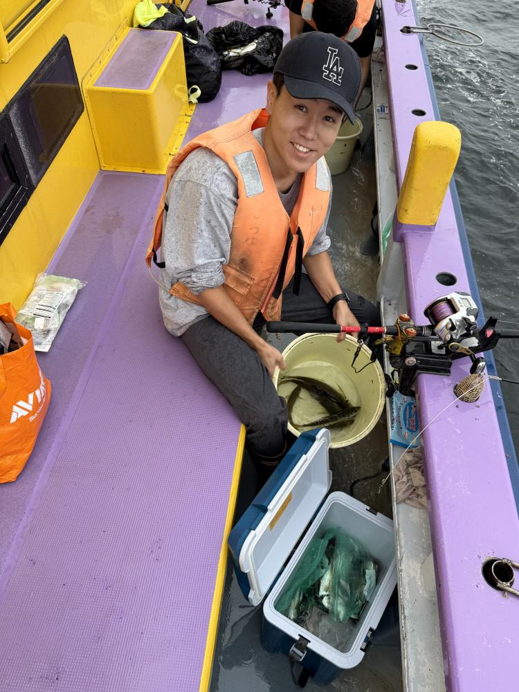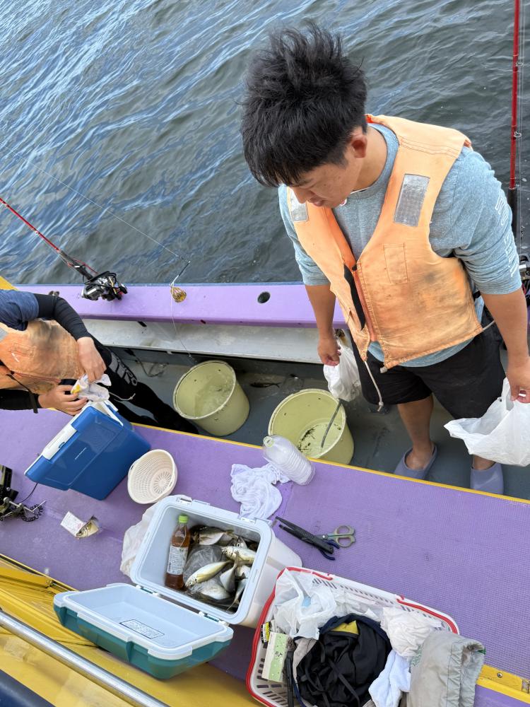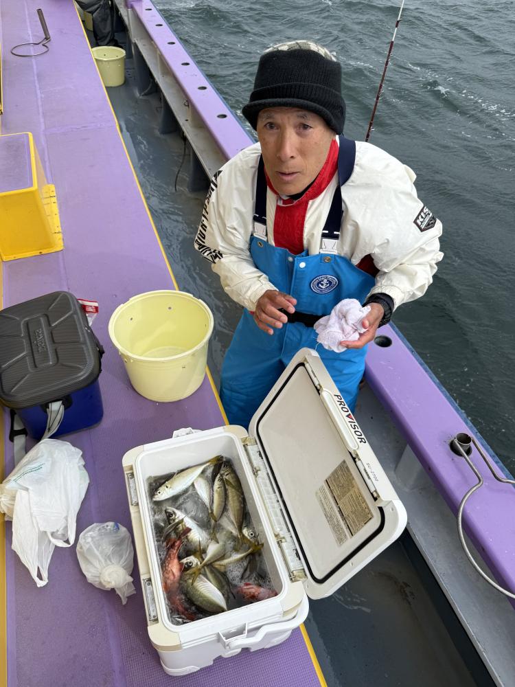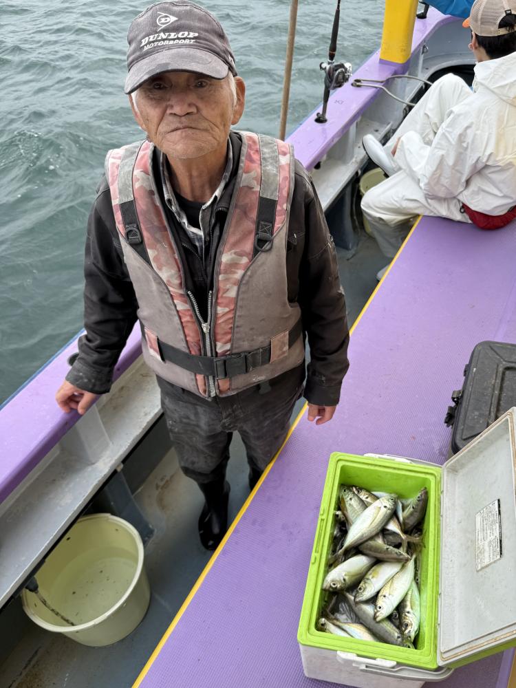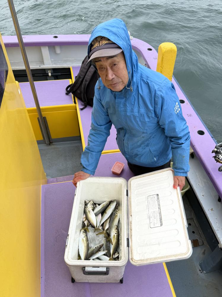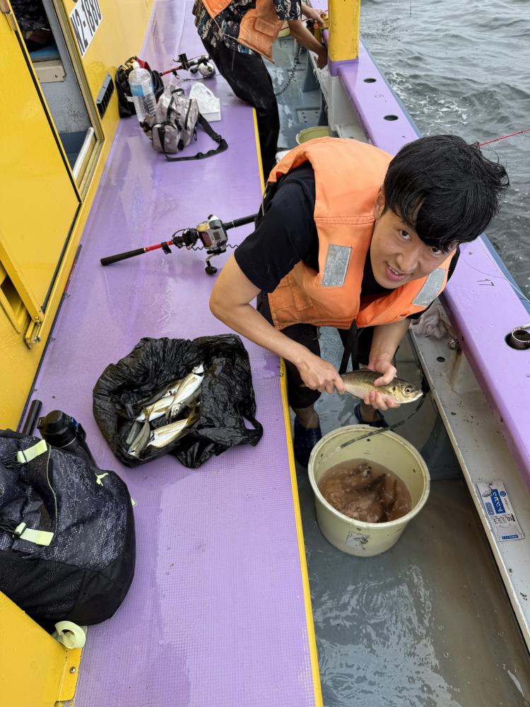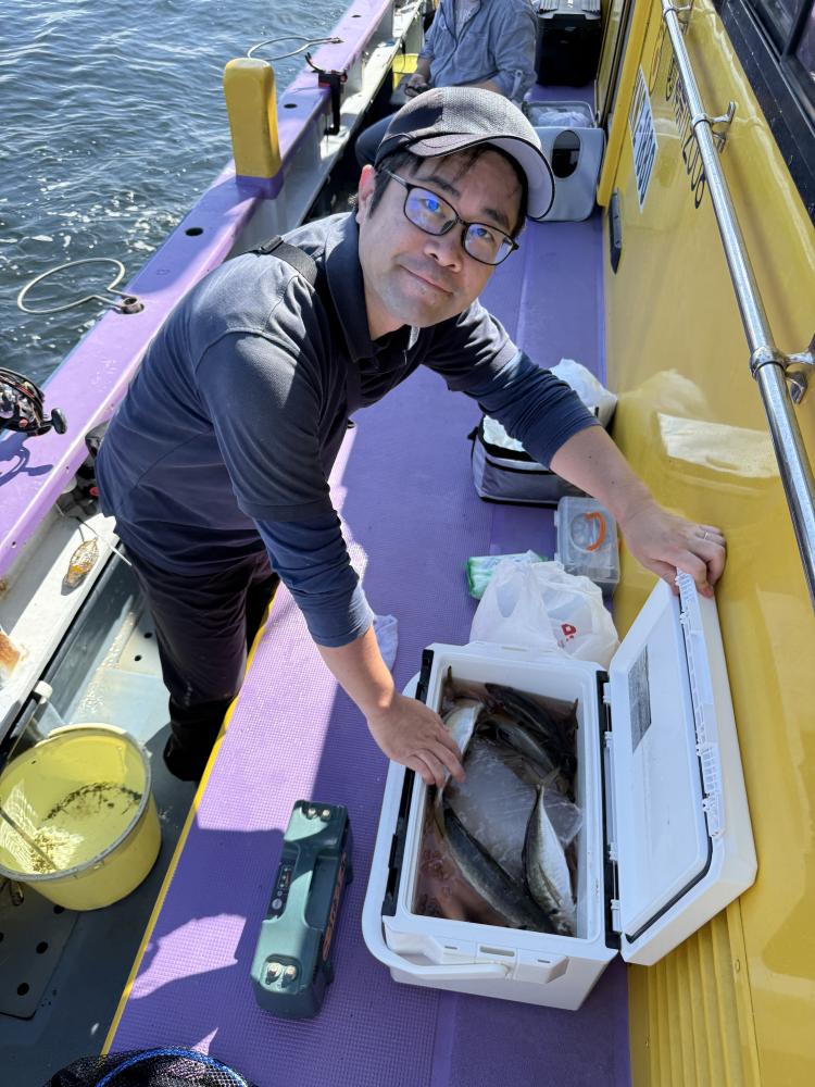 10時45分にタチウオ狙いは終了して、ナギの海上で、レンタルテンヤロッド多数の片付けからレンタルアジロッド多数の支度、ロッドキーパーの取り付けから電源接続、猿島金アジポイントで釣り方レクチャーからの実釣までの取次ぎ時間は1時間20分のアジ釣り開始時間は11時05分となりました、沖上がり時間まで1時間55分とポイント探索時間も限られてある中、実釣開始、反応が入って来ると猿島金アジの顔見られるも❓中々連打❗️連打❗️とはならず、ポイント探索からの探索からの実釣開始するも❓ラスト30分で実釣開始すると活性の高い群れに遭遇して連打❗️連打❗️のシーンもあり、ビシアジデビュー戦の方々にもプチ盛り上がりを体験して頂けました⭕️