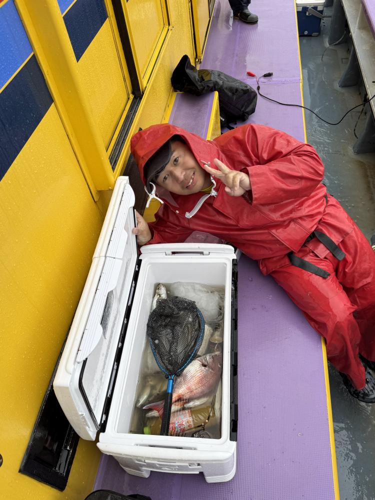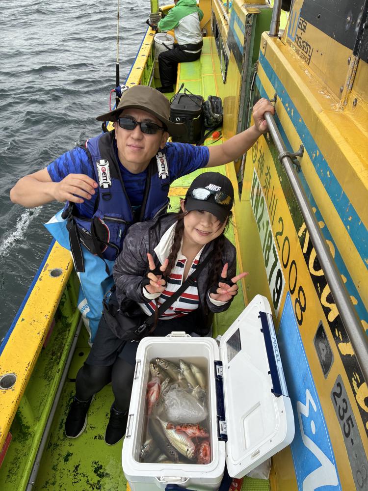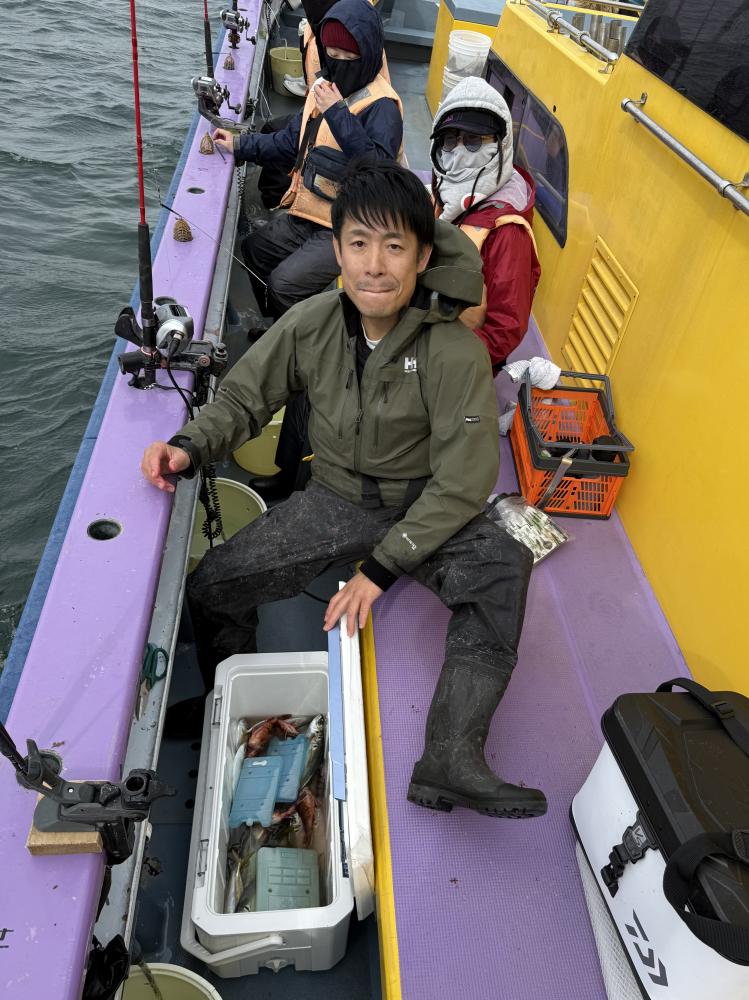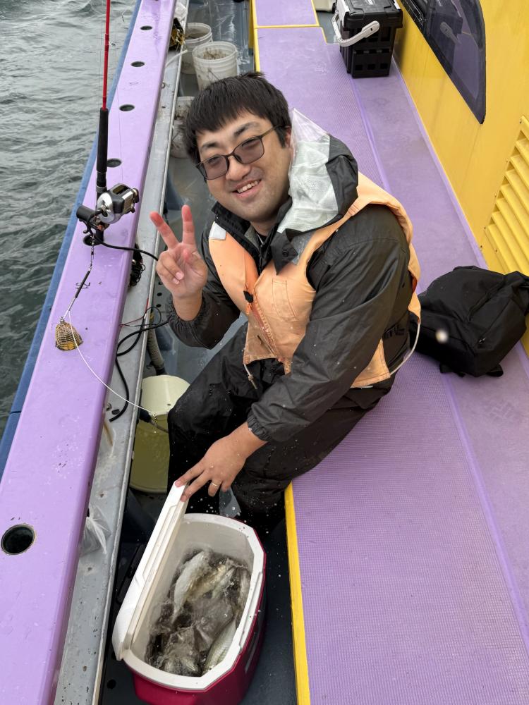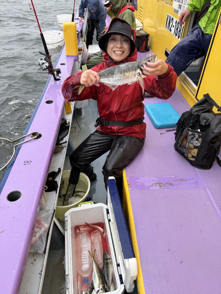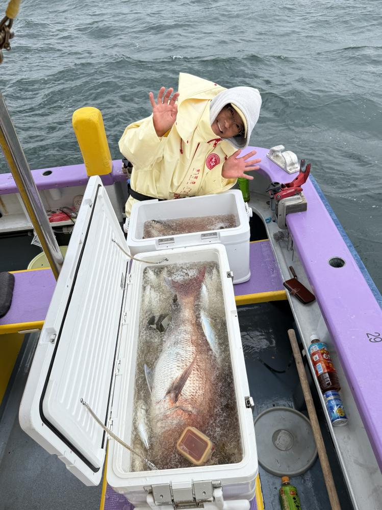 朝イチのモーニングサービスありで、テンヤデビュー戦の方々のロッドも曲がり「娘さん」「お兄ちゃん」達もロッドを水平に保てず、強い抵抗にビックリ‼️