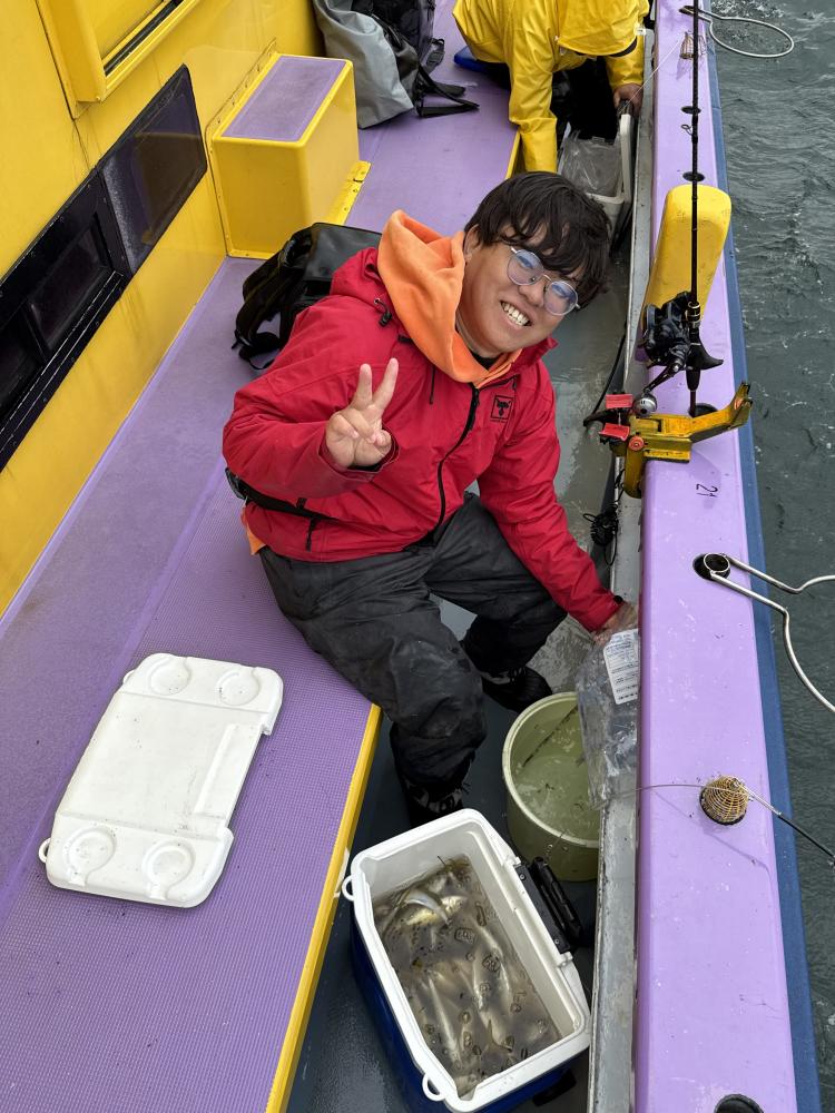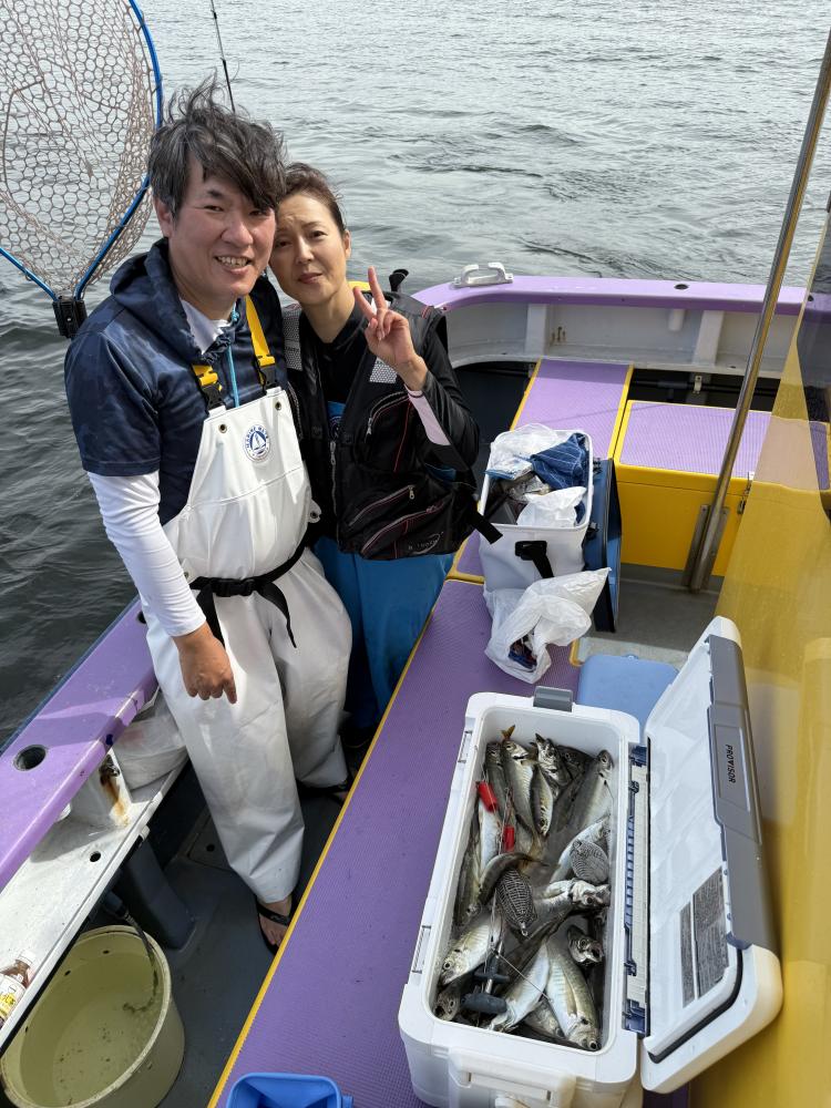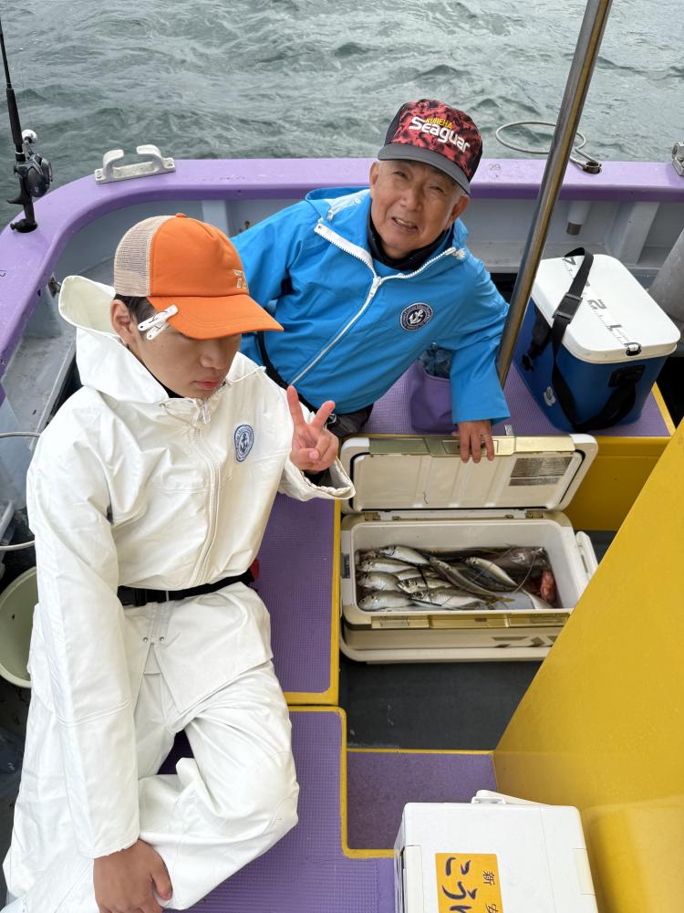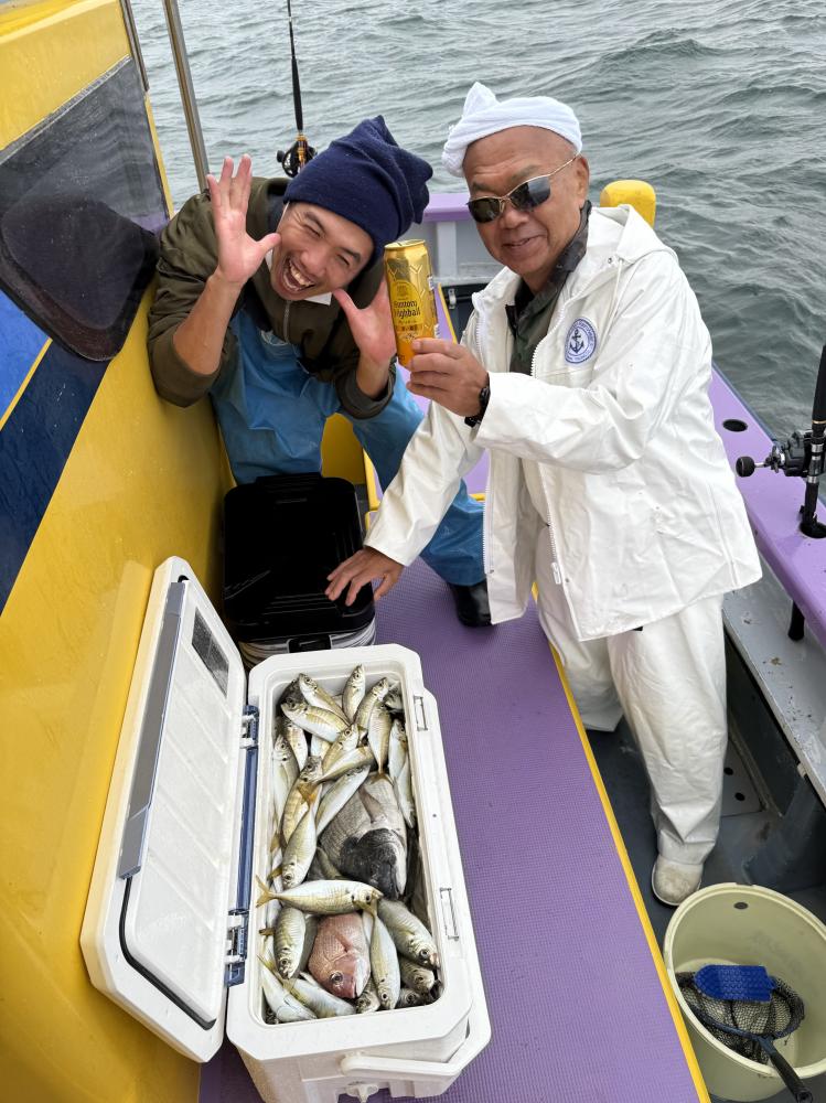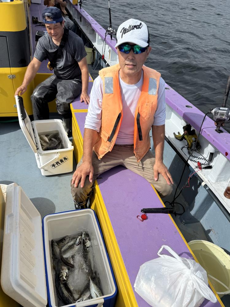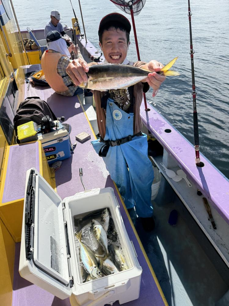 朝イチのモーニングサービスありで、テンヤデビュー戦の方々のロッドも曲がり「娘さん」「お兄ちゃん」達もロッドを水平に保てず、強い抵抗にビックリ‼️
