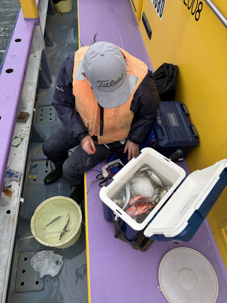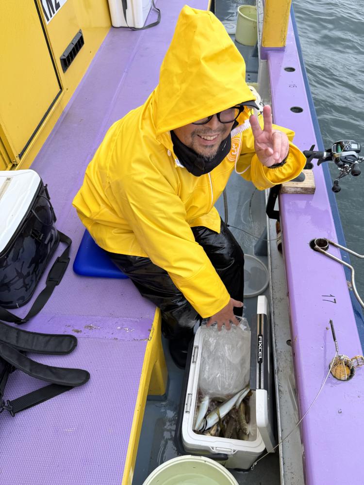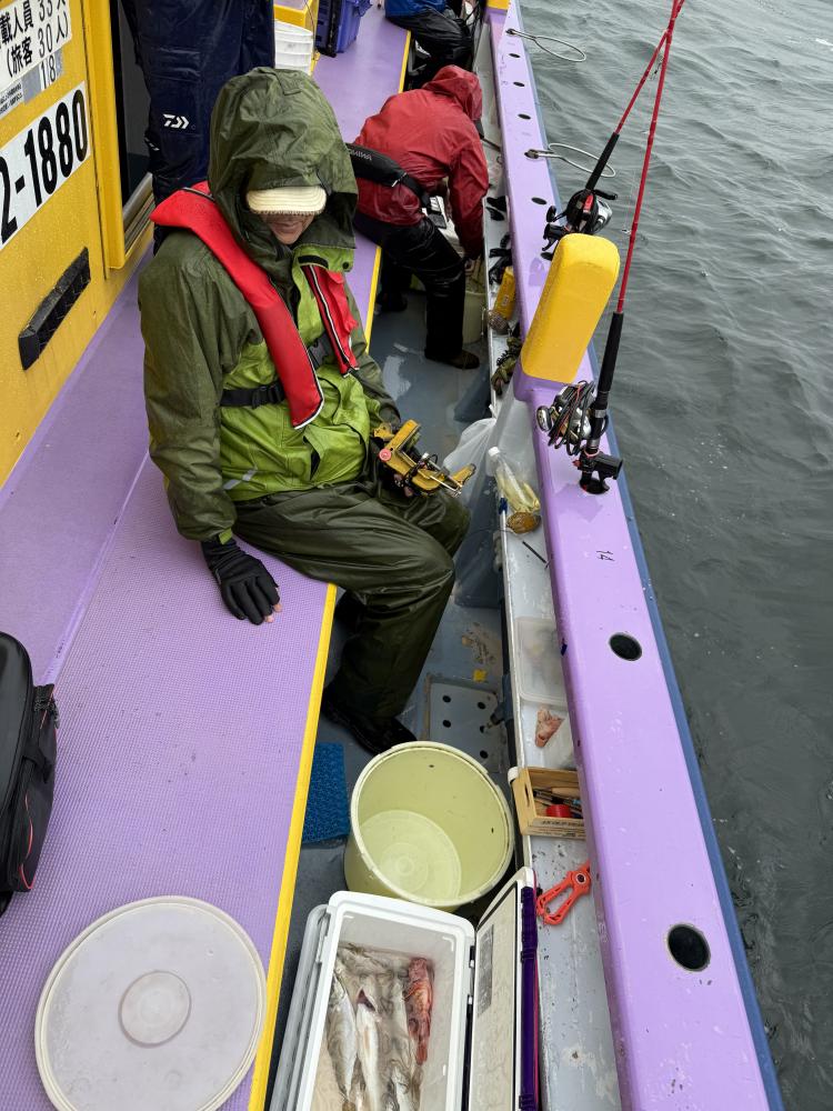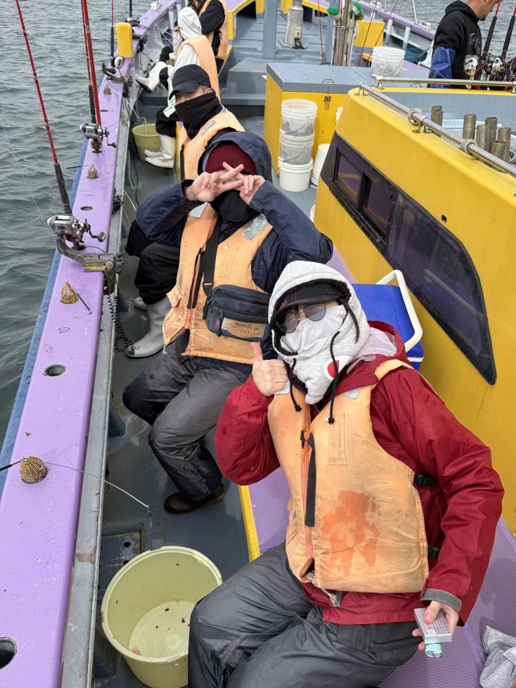 実釣開始した時には反応は底反応で、取れる方はポツリポツリと上がりましたが、段々と反応が固まり始めると2人巻き、3人巻きと平均に釣れてお土産は取れました⭕️