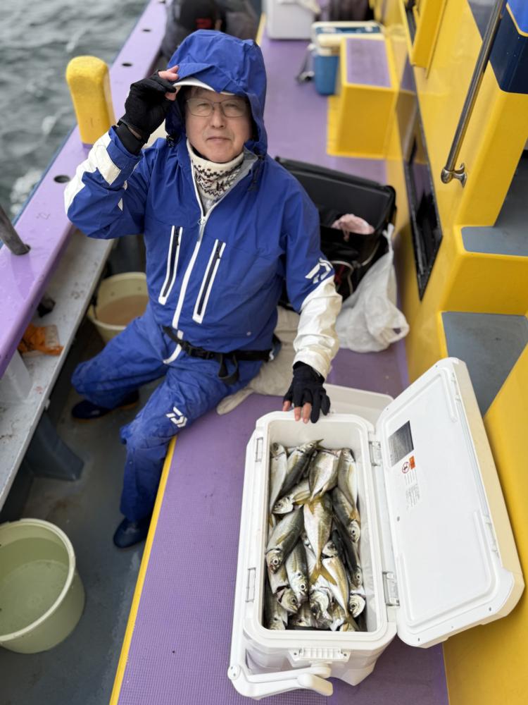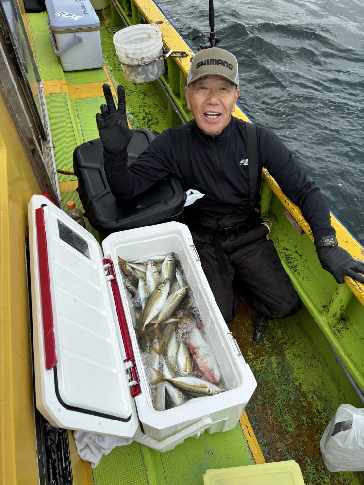 前半は下潮で流れてポツリ〜ポツリと!ドラゴン級の極太個体が多めに混じる流しもあり!後半上潮で更なる追加を狙ったもののドラゴンは見た程度でしたが、メーター前後の良いサイズはアタリ良く追加出来ました!