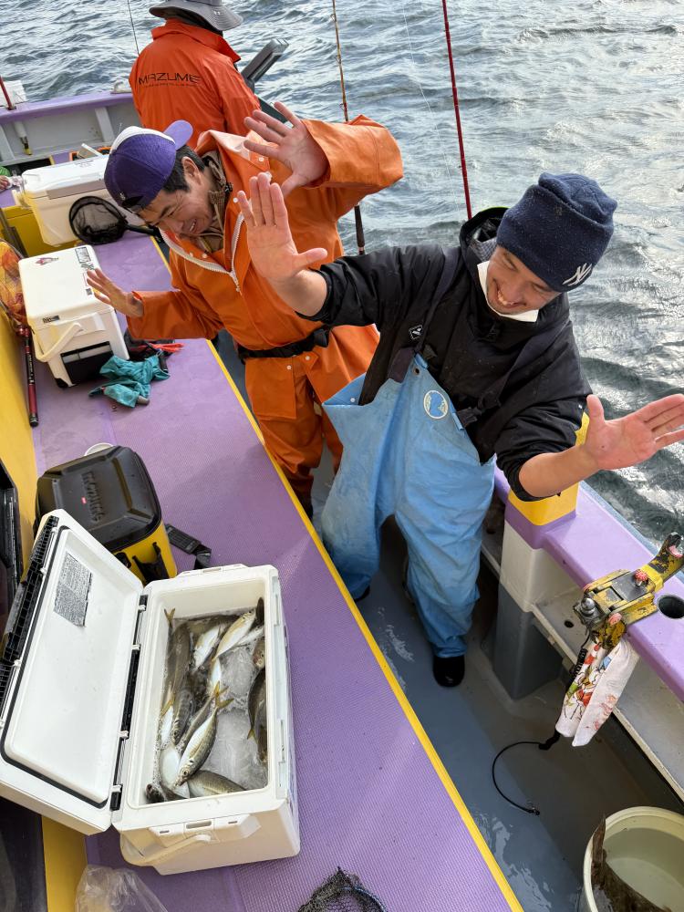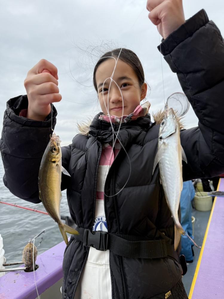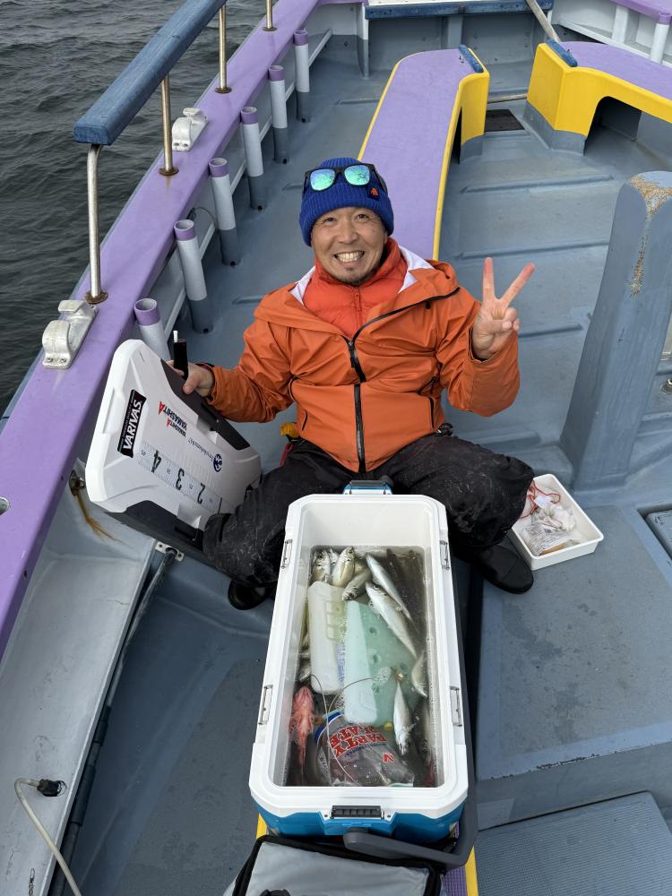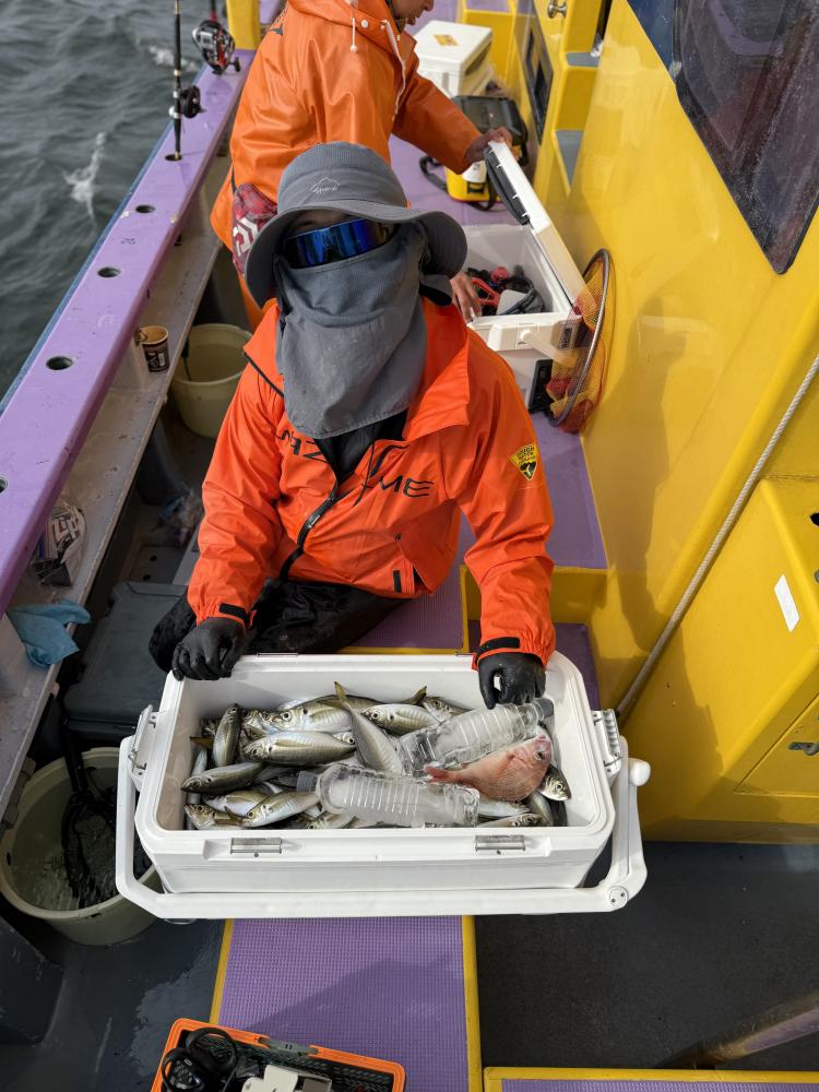 今日は、多くのアジ釣り人に乗船して頂き有難う御座いました。レンタルの方が多くアジ型を出すと20センチ前後の型から23センチクラスがメインにダブル交じりで型を出す!途中移動して見るが何処もパットせず〜外道に1kのヒラメと1.5kのクロダイが船中3枚にカイワリが!
