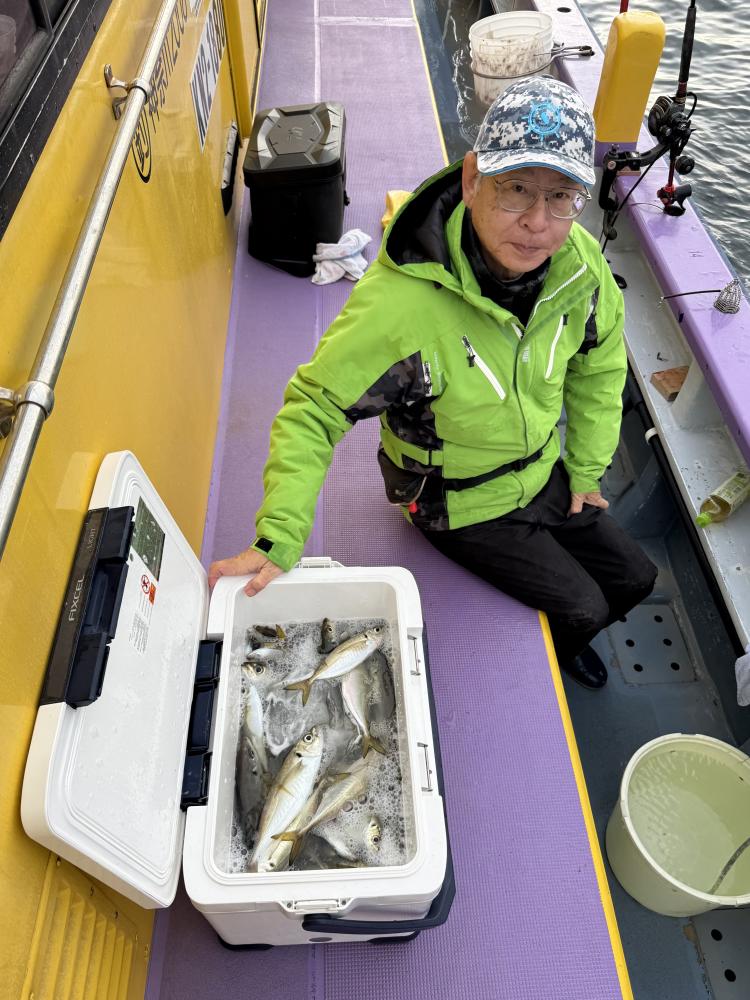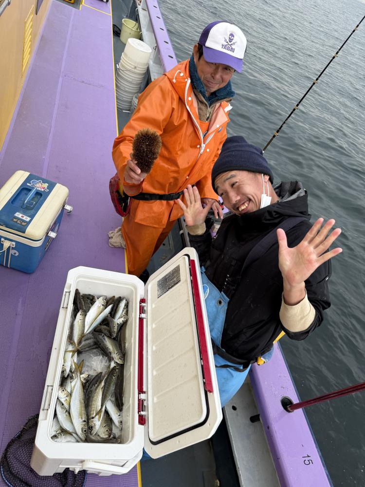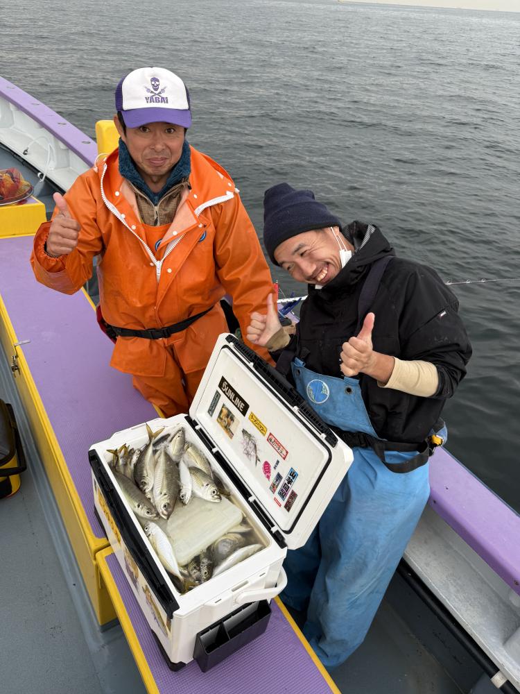 今日は、曇り空の中皆様気合いを入れて頑張って頂きました。アジ型を出すと18センチから20センチ23センチクラスに30センチクラスが型を出す!朝のうちは暖かかったが時間と共若干冷えて来たのかなぁ〜?明日も出船致します。