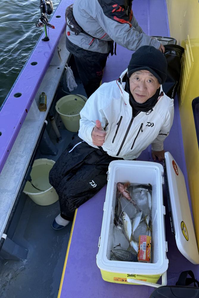 今日は、アジ型を出すと18センチから20センチ23センチクラスに25センチ28センチクラスの中型交じりで型を出す!外道にイシモチが!