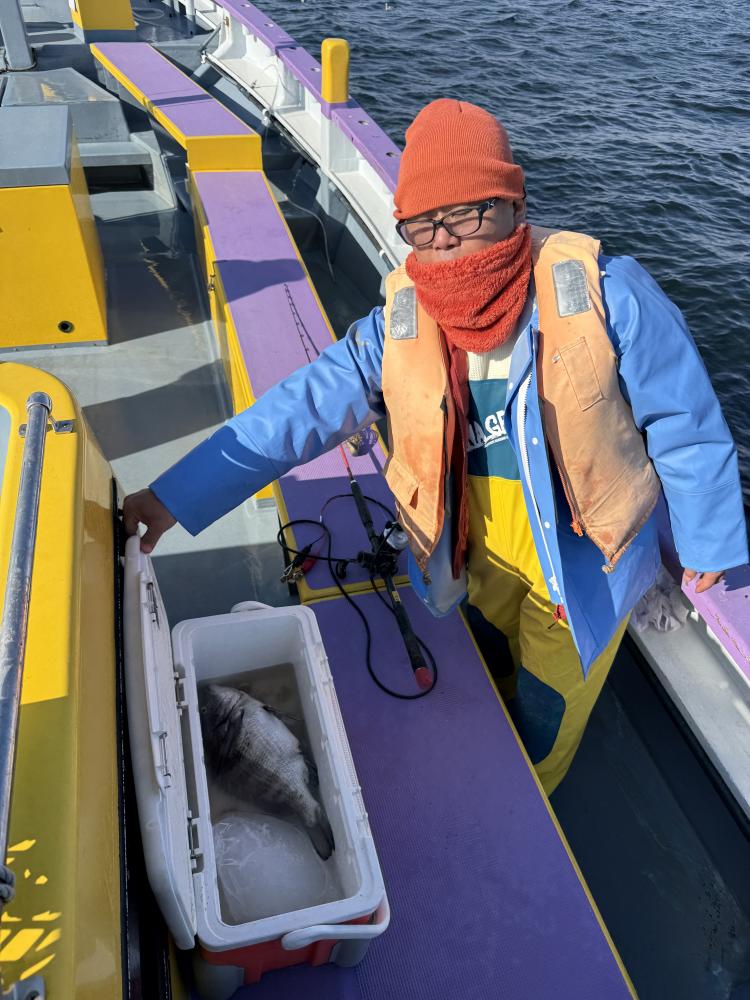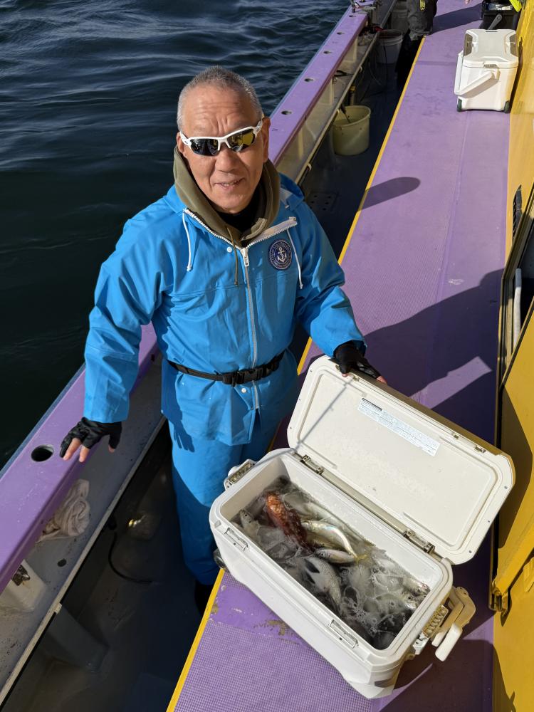 交じりで型を出す!派手さは無いが帰りまで食い有りました。外道に1kから2kのクロダイが船中2枚とイシモチに大きくは無いがマダイが!