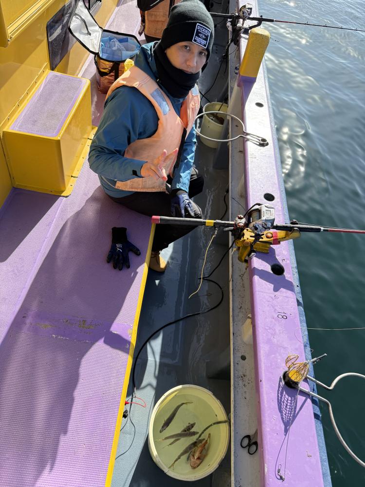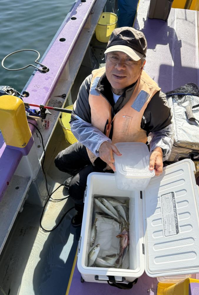 今日は、アジ型を出すと20センチ前後の型から23センチ25センチクラスの中型猿金アジが食ってくる!時折りダブルで食う時も有り、外道にイシモチとホウボウが!